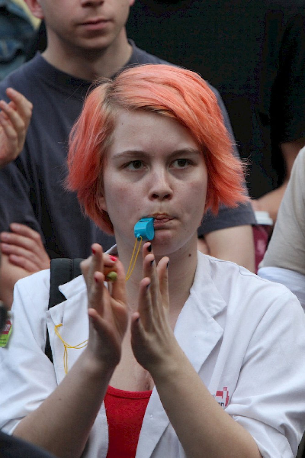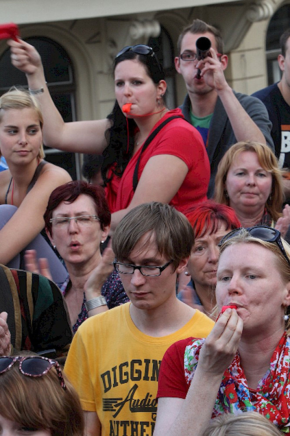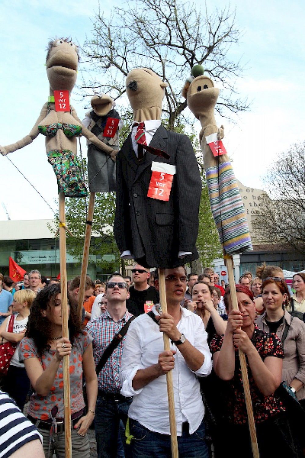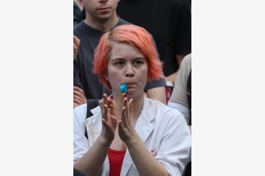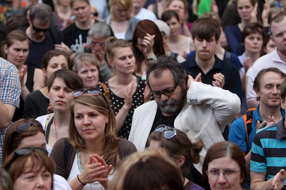Mehr als 3000 Menschen mit Plakaten, Trillerpfeifen oder Hasenohren hatten sich auf dem Universitätsplatz gegen 17.30 Uhr eingefunden, um vor Haseloff ihren Unmut über die Kürzungspläne der Landesregierung im Hochschul- und Kulturbereich kund zu tun. Nicht nur Uni-Angehörige und Mitglieder des Hochschulbündnis' aus vielen Landesteilen, auch Kulturschaffende waren zahlreich gekommen und hatten sogar Theaterpuppen mitgebracht. Matthias Brenner, Intendant des "neuen theaters" rief alle zu gemeinsamen Protesten auf: "Es ist Zeit, dass wir das Aktionsbündnis zu einer ganz breiten demokratischen Schlagkraft entwickeln. Bildung ist Kultur - Kultur ist Bildung. Wir sind alle gemeint!"