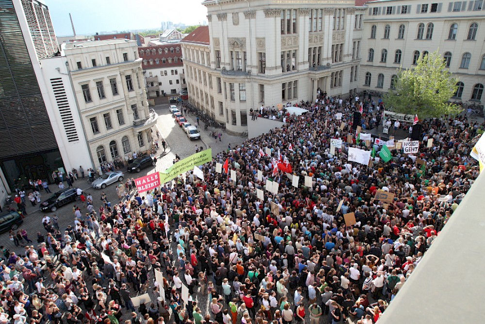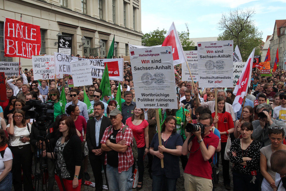 Die Proteste werden weitergehen. So wird die "5vor12"-Initiative am 21. Mai mit landesweiten Protesten gegen den drohenden Kulturabbau demonstrieren. Am 29. Mai ist ein großer Hochschul-Protestzug zum Magdeburger Domplatz geplant. Insgesamt 80.000 Menschen haben für den Erhalt einer leistungsfähigen Universitätsmedizin und der Universität Halle inzwischen unterschrieben, 50.000 davon online.