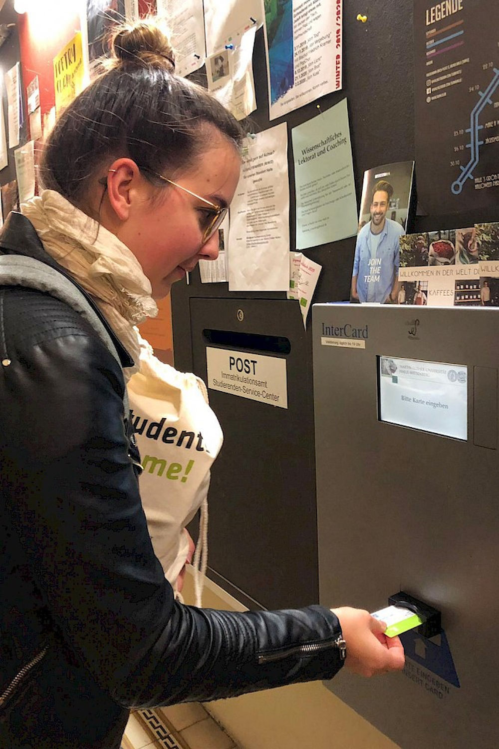 Löwengebäude, Erdgeschoss. Es rattert kurz im Validierungsautomaten. Sekunden später spuckt das Gerät den brandneuen Studierendenausweis von Luise Graffschack (19) wieder aus. Er ist nun bedruckt und als Ticket in großen Teilen des Verkehrsverbundes gültig. Noch ist das wichtig für die angehende Grundschullehrerin aus Leipzig. Allerdings ist der Umzug nach Halle schon fest geplant.