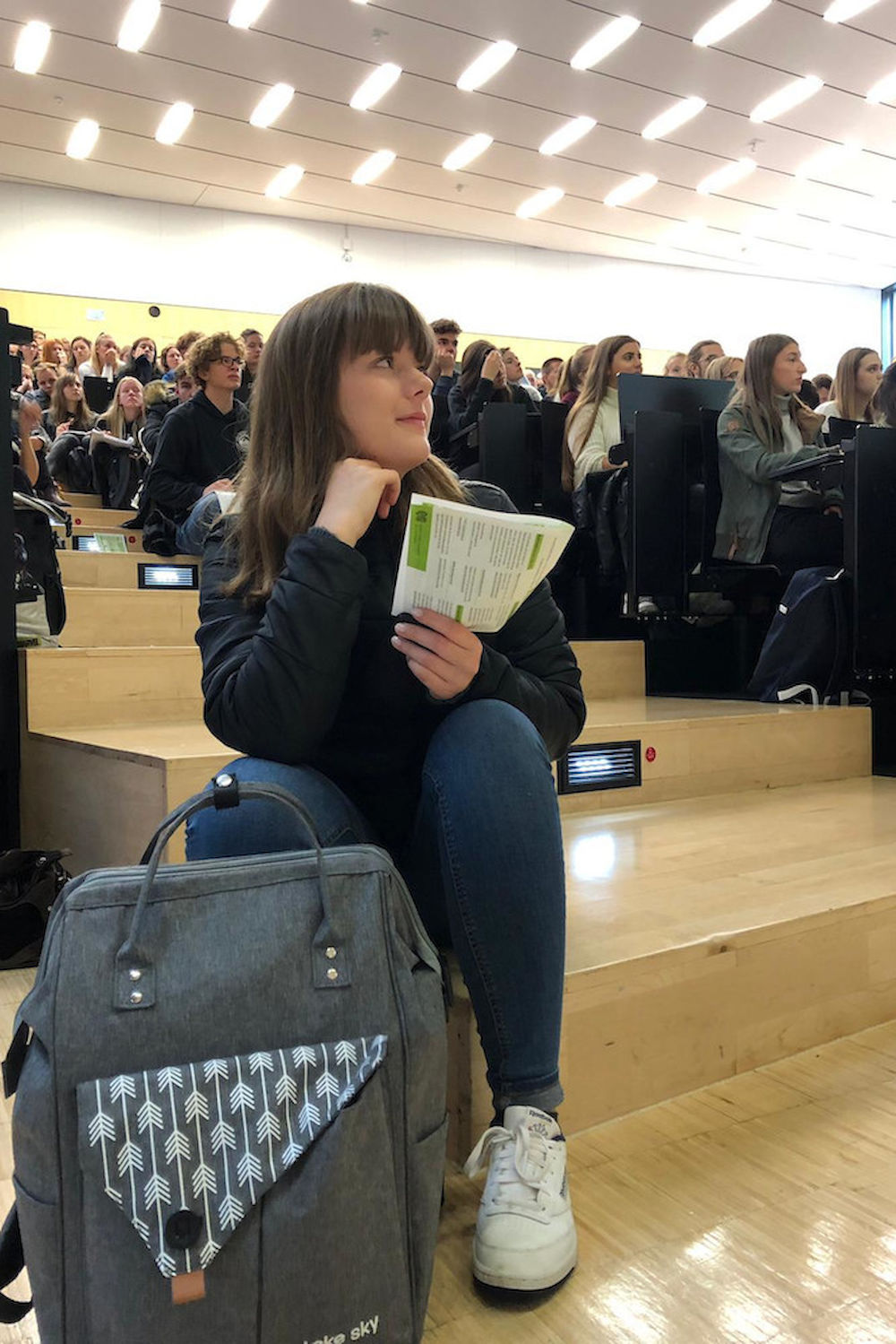Gleich startet der Vortrag „Wege ins Ausland“. Sitzplätze werden rar, die Treppe wird bevölkert. Kaum da und schon Fernweh? Geht kaum anders, meint Referentin Anna Kostov vom International Office, denn die Regelstudienzeit ist schnell vorüber und die Organisation nicht im Handumdrehen erledigt. Während Celine Janietz noch keine richtigen Vorstellungen hat und zur Inspiration hier ist, weiß Adriana Rank schon ziemlich genau, dass es mindestens für ein Praktikum nach Italien gehen soll. Da hat sie schon zehn Au-pair-Monate verbracht. Was auch ein bisschen daran liegt, dass ihr Vater Italiener ist. Übrigens: Die beiden 20-Jährigen haben bisher in Halle gemeinsam die Schulbank gedrückt. Die Orientierungstage sind wohl ihre letzte Chance auf „Sitznachbarschaft“ – man studiert verschiedene Dinge…