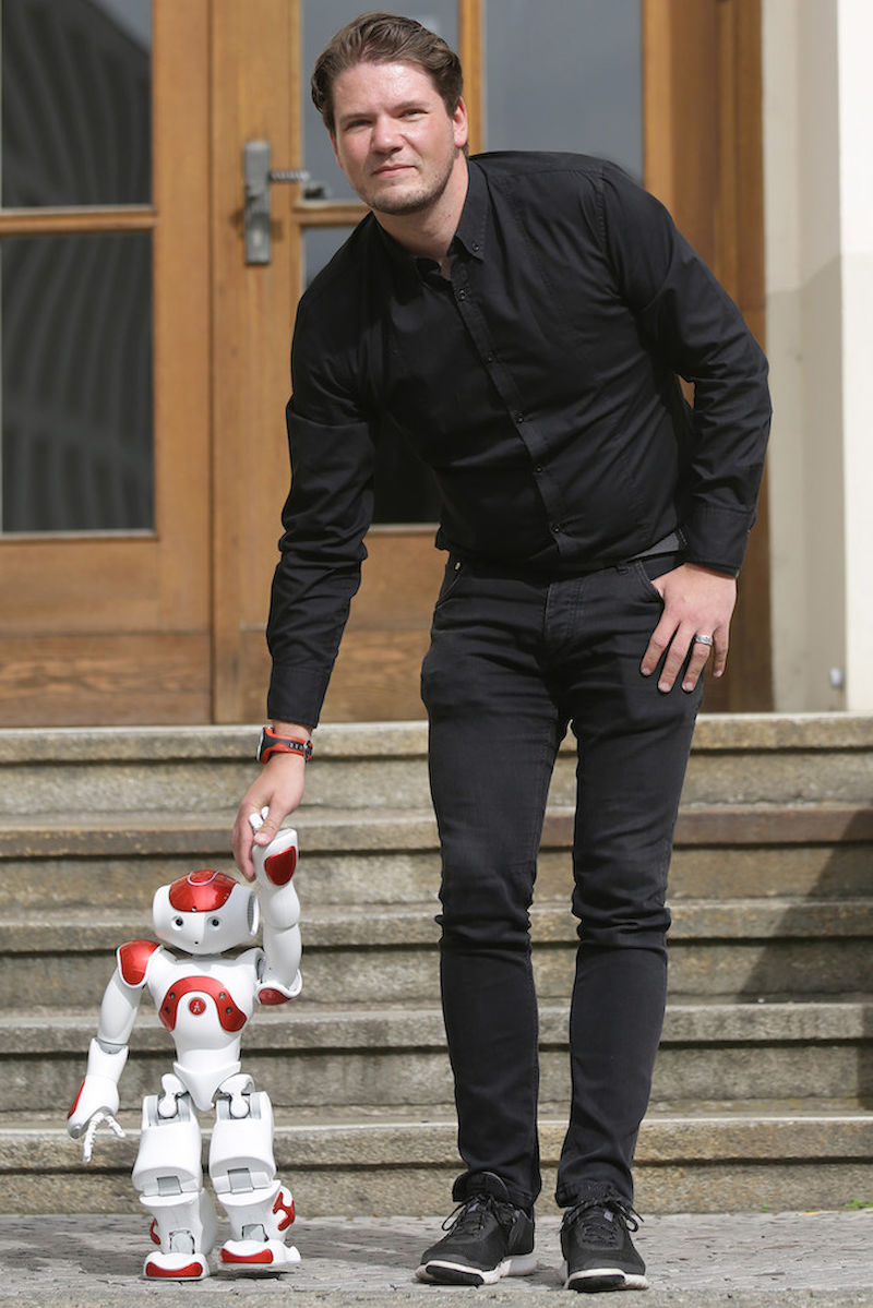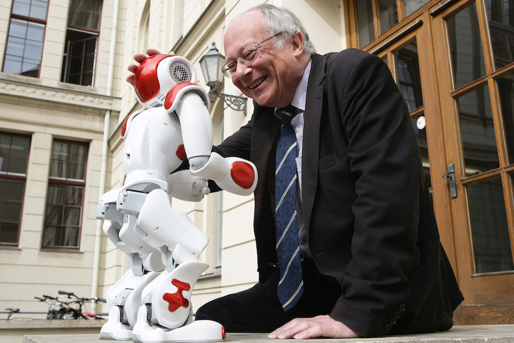 Rund 7.000 Euro hat die Anschaffung von Nao gekostet. Geld, das gut investiert ist, wie Wolf Zimmermann findet: „Diese Modelle nehmen auch am Robocup teil, der Fußball-Weltmeisterschaft für Roboter.“ Doch nicht die Liebe zum Fußball ist es, was den Professor für Software-Engineering und Programmiersprachen interessiert. Sondern: Alle Handlungen, Bewegungen und auch die Reaktionen von Nao lassen sich steuern und programmieren.
