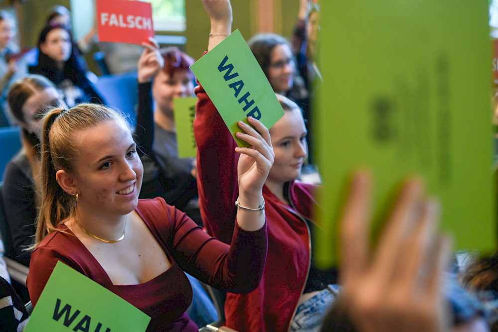 Die noch bis zum Donnerstag laufende Herbst-Uni an der MLU steht unter dem Motto „Wecke die Lehrkraft in dir“ und bietet den Schülerinnen und Schülern der 10. bis 12. Klasse mit über 40 Veranstaltungen die Möglichkeit, ihre Voraussetzungen für ein Lehramtsstudium zu prüfen und ein Feedback zu ihren Fähigkeiten und Erwartungen zu erhalten. Getragen wird die Herbst-Uni vom Zentrum für Lehrer*innenbildung an der MLU sowie von den Fachdidaktiken und Fachwissenschaften an den Instituten, der Allgemeinen Studienberatung, der Stabsstelle Hochschulmarketing und Veranstaltungsmanagement sowie außeruniversitären Partnern wie dem Stadtmarketing Halle.