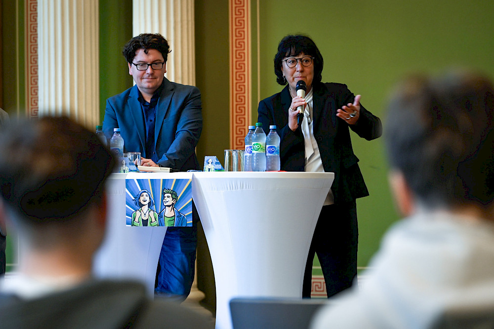 Im Anschluss an die Diskussionsrunde nahm die Bildungsministerin an einer weiteren Veranstaltung der Herbst-Uni teil. Sie stand unter dem Titel „Wie finde ich heraus, ob ich eine gute Lehrkraft sein kann?“ und wurde von Prof. Dr. Pablo Pirnay-Dummer, Prorektor für Studium Lehre und Professor für Pädagogische Psychologie, geleitet.