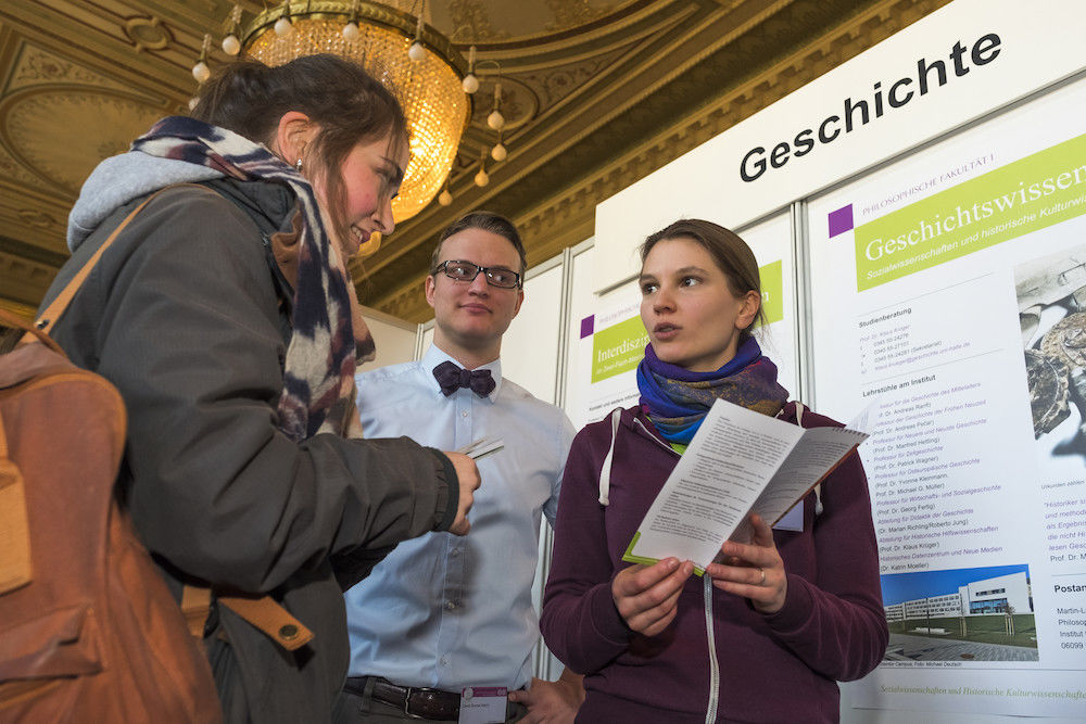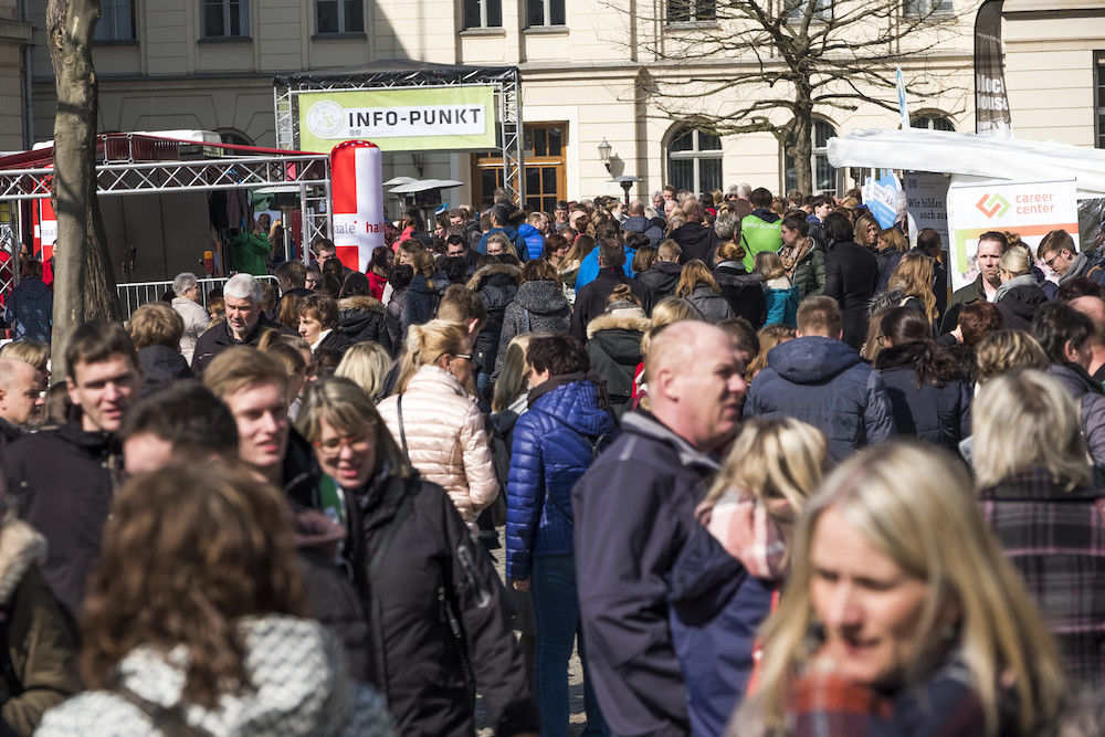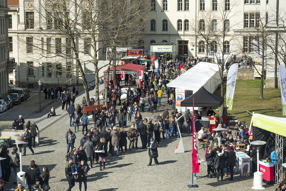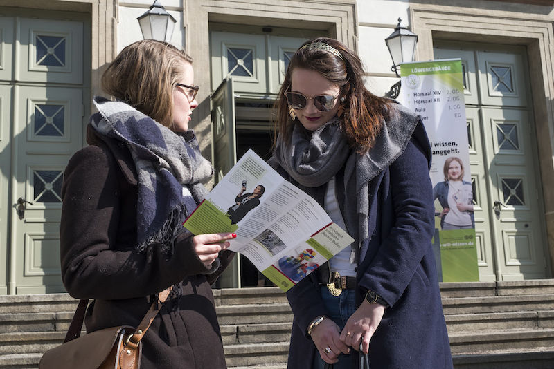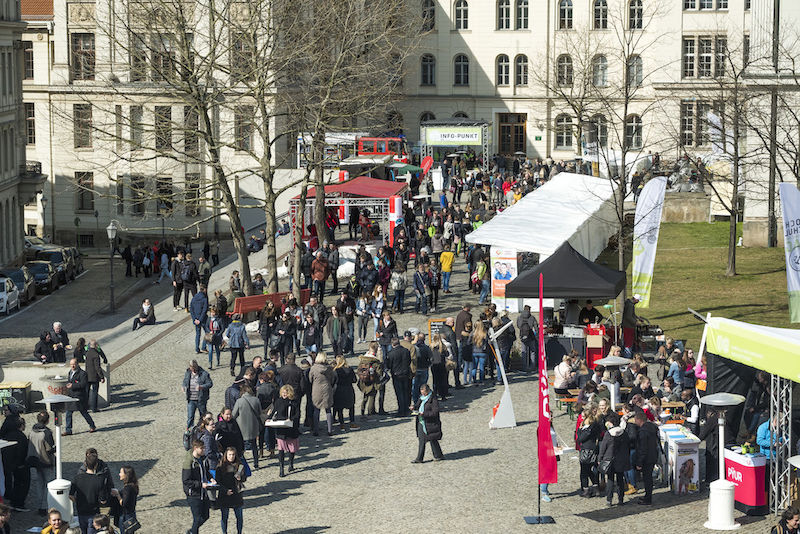 Auch in diesem Jahr war es wieder ein besonderer Anblick: die wissenshungrigen Schülerinnen und Schüler, Abiturienten und anderen Studieninteressierten, die von Stand zu Stand zogen, um möglichst viele Informationen aufzusaugen. Neben den Info-Ständen zu den rund 260 Studienangeboten, stellten sich auch die Hochschulgruppen und Vereine vor. Manches Infomaterial war so gefragt, dass spontan die Drucker angeworfen wurden, um für Nachschub zu sorgen.