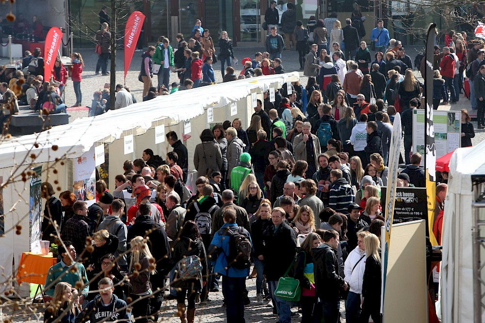 Knapp 2.000 Besucher hatte es in diesem Jahr auf den Uniplatz gezogen. Darunter auch Lisa Röttig, die mit ihren Freunden aus Köthen angereist war. "Ich möchte gerne im Oktober hier in Halle anfangen zu studieren", erzählt die 18-Jährige, "die Uni gefällt mir gut!" Welches Fach die Schülerin wählen wird, steht dabei noch nicht ganz fest. Informiert habe sie sich unter anderem über die Fächer Mathematik, Wirtschaftsmathematik und die Lehramtsstudiengänge.