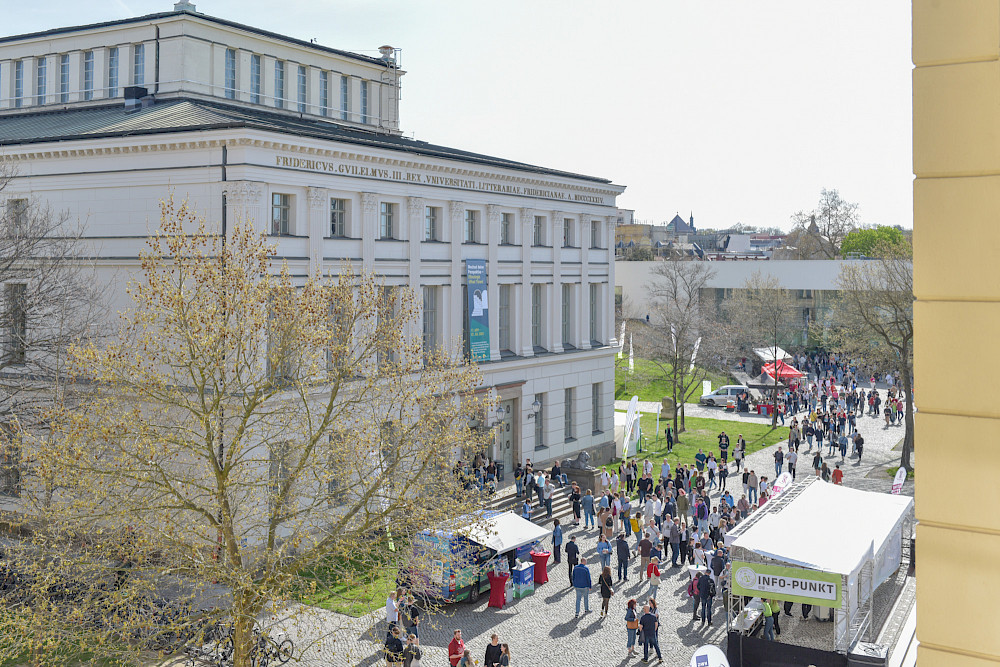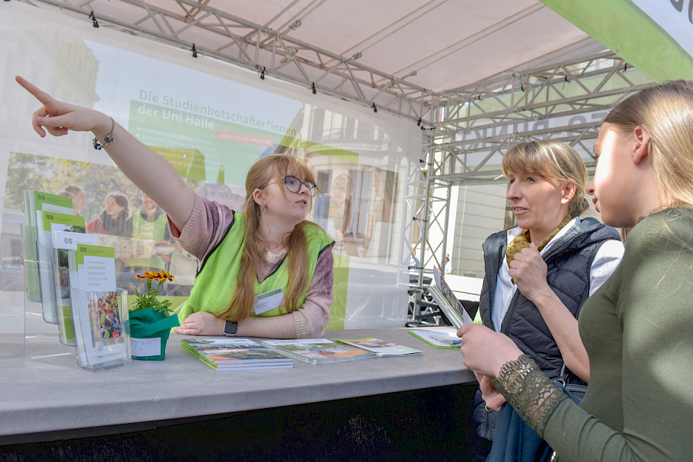 Ob an einem der zahlreichen Informationsstände im Löwengebäude und im Melanchthonianum oder in einer der über 40 Vortragsveranstaltungen – Interessierte hatten viele Möglichkeiten, sich über das vielfältige Studienangebot an der MLU zu informieren. Darüber hinaus präsentierten sich das Studentenwerk Halle, studentische Initiativen, das Studentische Gesundheitsmanagement, das International Office und das Universitätssportzentrum. Abgerundet wurde das Programm durch Führungen durch verschiedene Institute und die Stadt. Sowohl Studierende als auch Dozierende und Mitarbeitende der Universität standen interessierten jungen Menschen und deren Eltern bis in den Nachmittag hinein Rede und Antwort.