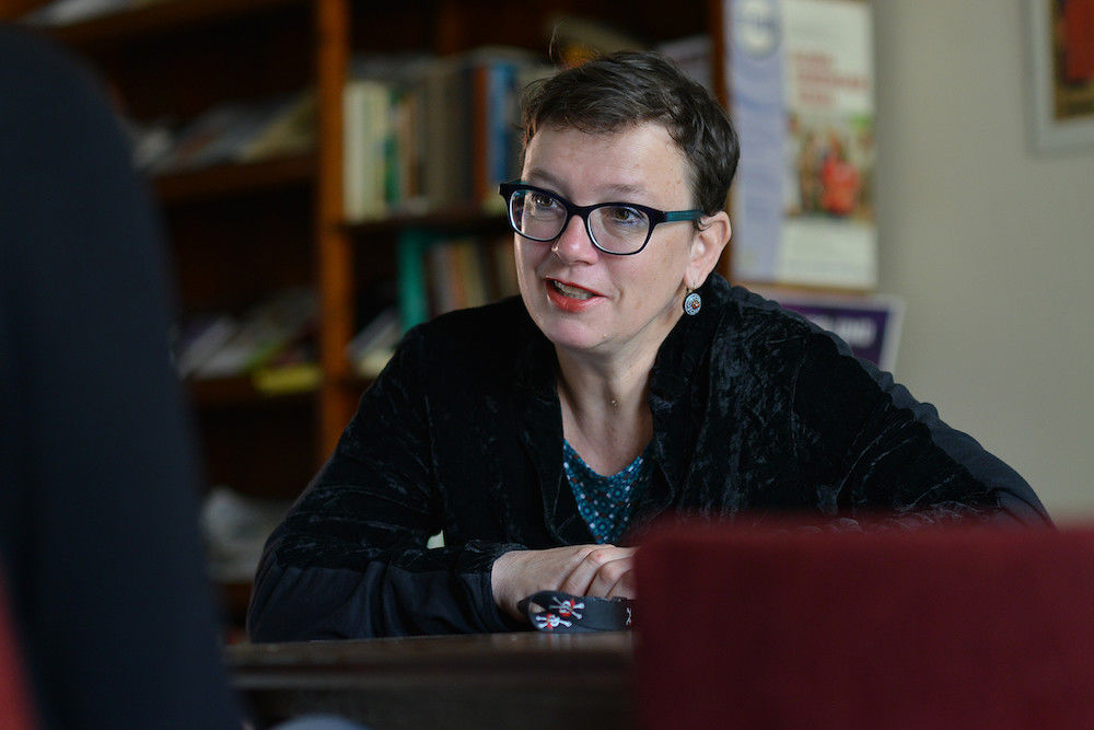 Nach 20 Jahren als Pfarrerin der sächsischen Landeskirche hat Thiel im September 2016 in der Evangelischen Studierendengemeinde (ESG) in Halle noch einmal neu angefangen. „Ich wollte mich verändern – in Richtung Kultur und Bildung. Und ich wollte zur Evangelischen Kirche Mitteldeutschland“, sagt sie beim Gespräch in ihrem Büro in der Puschkinstraße. Hier hat die ESG ihren Sitz.