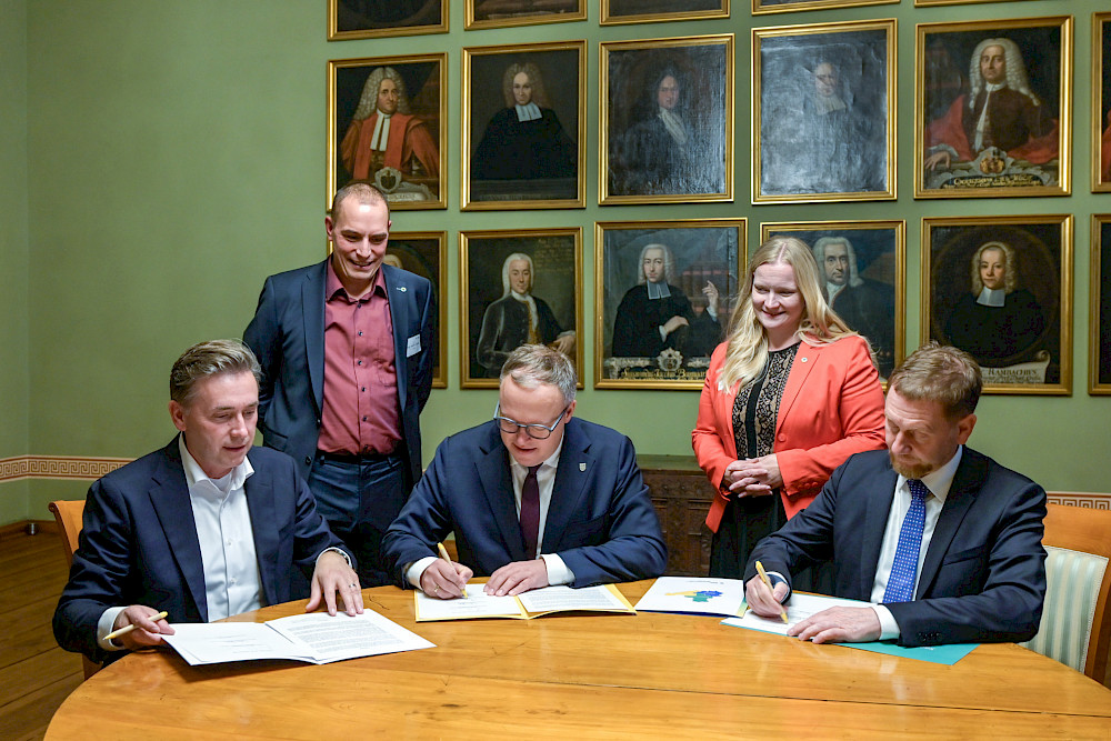 Die Ministerpräsidenten der drei mitteldeutschen Länder bekennen sich darüber hinaus in einer gemeinsamen Erklärung zur Förderung von iDiv über das Jahr 2030 hinaus. Anlässlich der Veranstaltung gab es dazu auch einen Fototermin, bei dem Wissenschaftsstaatssekretär Thomas Wünsch Ministerpräsident Dr. Reiner Haseloff vertrat.
