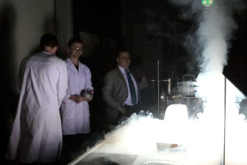 Die Experimentalvorlesung gehört bereits von Anfang an ins Repertoire der Langen Nacht. Genau genommen ist sie jedoch viel älter. René Csuk bietet sie seit 1995 regelmäßig an. Damals wechselte er von Heidelberg nach Halle, wo er seither als Professor für organische Chemie tätig ist. Ein Kollege fragte ihn, ob er eine Veranstaltungsreihe mit Chemievorlesungen für ein Laienpublikum übernehmen könnte. Csuk willigte ein und überlegte, wie er sein Fach ansprechend in Szene setzen könnte. Experimentalvorlesungen, so meint er, seien eine der ältesten Methoden, um Menschen für die Wissenschaft zu begeistern.