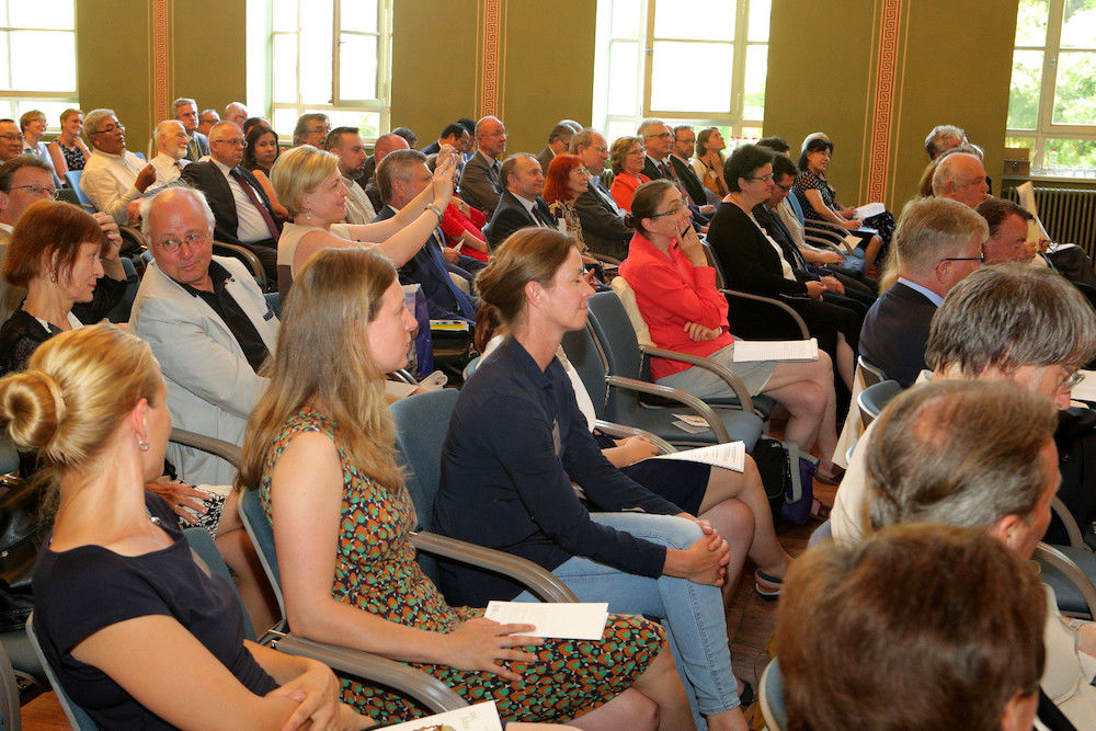 Belege für die zunehmende Internationalisierung an der Martin-Luther-Universität fanden sich zahlreich auf der Veranstaltung, die vom Prorektor für Forschung und wissenschaftlichen Nachwuchs Prof. Dr Michael Bron moderiert wurde. Einerseits saßen im Publikum viele hallesche Wissenschaftler, die im Rahmen ihrer Forschung diesen Gedanken bereits seit Langem leben, unter ihnen die Japanologin und frühere Prorektorin, Prof. Dr. Gesine Foljanty-Jost, die einen Großteil der zahlreichen langjährigen Partnerschaften zwischen der Uni Halle und namhaften Hochschulen in Japan anbahnen half. Und auch der frühere Prorektor, Prof. Dr. Joachim Ulrich, der seit mehr als 20 Jahren als Gutachter für den Deutschen Akademischen Austauschdienst (DAAD) tätig ist und in seiner Amtszeit fünf Uni-Partnerschaften den Weg geebnet hat.