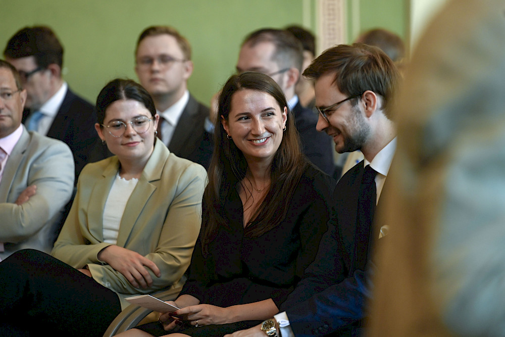 „Sie haben Durchhaltevermögen, Disziplin und juristische Schärfe bewiesen – Eigenschaften, die nicht nur im Studium, sondern auch in der täglichen Arbeit als Juristinnen und Juristen gefragt sein werden“, sagte Weidinger bei der Veranstaltung in der Aula. „Sie sind in den Genuss der hochklassigen Ausbildung hier an der Martin-Luther-Universität gekommen“, so die Ministerin. „Der Rechtsstaat braucht Sie!“, fügte sie nachdrücklich an. Ob in der Anwaltschaft, der Verwaltung, in Unternehmen oder vor allem in der Justiz des Landes Sachsen-Anhalt: „Gut ausgebildete Juristinnen und Juristen werden gesucht. Gerade im richterlichen Dienst und bei der Staatsanwaltschaft besteht ein hoher Personalbedarf.“ Sie lade jetzt schon dazu ein, sich für eine Karriere in der Justiz zu entscheiden. Sie sei nicht nur krisensicher, sondern biete auch persönliche Erfüllung, große gesellschaftliche Verantwortung und Anerkennung sowie vielfältige Entwicklungsmöglichkeiten. Und: „Wir werden Ihnen attraktive Angebote machen.“