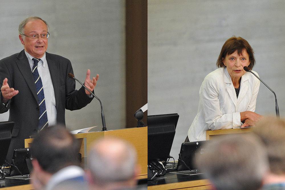 Das Publikum wollte im Anschluss von beiden Kandidaten Genaueres wissen und hakte nach: Wo wollen die Kandidaten sparen? Und wer soll über Kürzungen entscheiden? Ist denn Zeit zur Diskussion vorhanden, wenn die Universitätsleitung dem Land bereits zum 30. September eine Strukturplanung vorlegen soll? Eine Stunde lange stellten sich beide Kandidaten den Fragen des Publikums. In ihren Antworten zeigten sich die verschiedenen Meinungen von Gesine Foljanty-Jost und Udo Sträter.