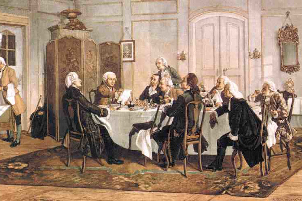 „Das Bohnenmahl der Gesellschaft der Freunde Kants hat eine lange Tradition“, sagt der emeritierte Professor für die Geschichte der Philosophie Stolzenberg. Seit zwei Jahren ist er Kanzler der Gesellschaft. „Ein Jahr nach Kants Tod, 1805, hat der Schotte William Motherby, Kants langjährige Weggefährten zu einem Erinnerungsfest eingeladen.“ Zwanzig Freunde Kants kamen daraufhin am 22. April, dem 81. Geburtstag des Philosophen, erstmals in dessen einstigem Wohnhaus zusammen.