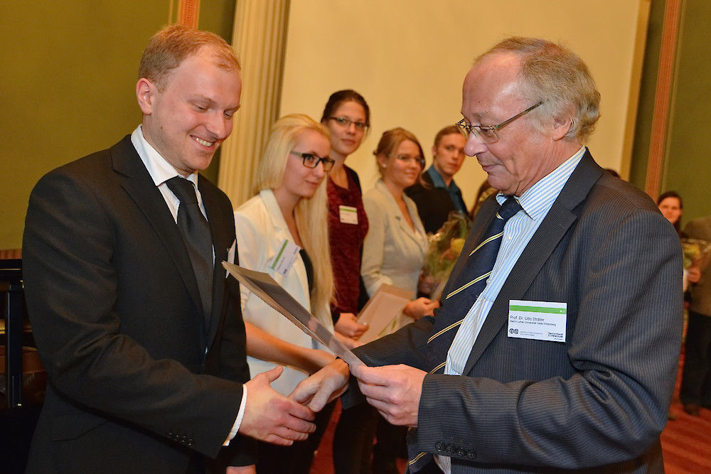 Deutlich wird außerdem: Die Förderer suchen den Kontakt zum akademischen Nachwuchs und das wird auch von den Stipendiaten sehr geschätzt, wie diejenigen versichern, die bereits gefördert wurden. „Ich kann den neuen Stipendiaten nur raten, die Zusatzangebote der Stipendiengeber zu nutzen – egal ob es Praktika sind oder der direkte Austausch mit den Förderern“, sagt Annabell Blaue, Stipendiatin der Halleschen Wohnungsgesellschaft mbH. Und Vroni Hentschel, die Agrarwissenschaften studiert, pflichtet ihr bei: Als Stipendiatin der Deutschen Landwirtschafts-Gesellschaft (DLG) konnte sie mehrere DLG-Tagungen besuchen, die für ihren Berufsweg mindestens genauso wertvoll seien wie die finanzielle Unterstützung von insgesamt 300 Euro monatlich.