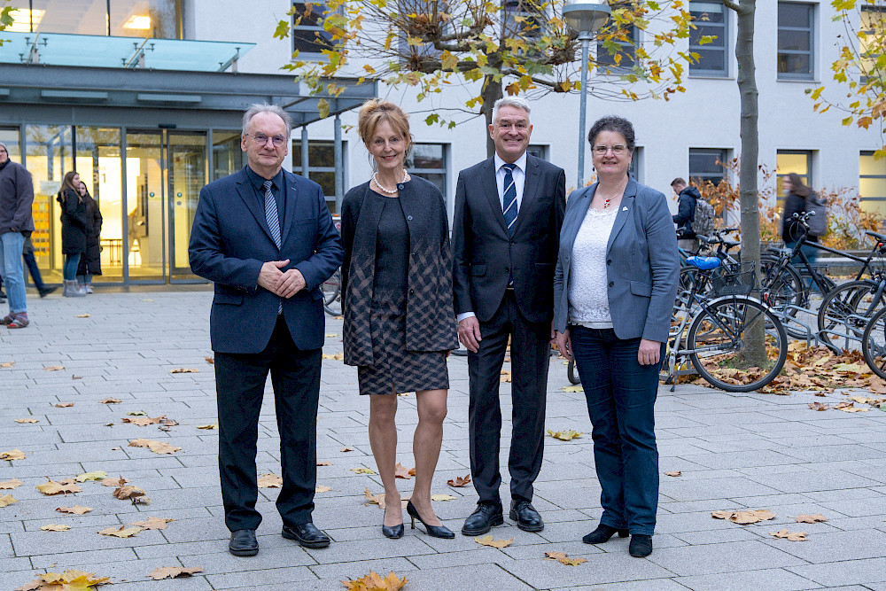 „Religion und Theologie haben eine ganz eigene Perspektive auf die Welt und die Wirklichkeit, die durch keine andere ersetzt werden kann. Eine solche Sichtweise ist auch und gerade in der heutigen Zeit nötig und für unser Wertefundament unverzichtbar“, sagte der Ministerpräsident. Mehr als gut gelaunt fügte er hinzu, dass er die gute Arbeit des Instituts so schätze, dass er den nahenden Ruhestand beider Professuren – Harald Schwillus hatte ihn kurz zuvor für sich und auch für seine Kollegin Prof. Dr. Regina Radlbeck-Ossmann angekündigt – verschieben wolle: „Sie können ja gern in den Ruhestand gehen, aber erst mit 70 gibt’s die Pension. Wir müssen alle länger arbeiten.“ Dem Institut wünschte er schließlich nicht nur weiterhin viel Erfolg, sondern natürlich auch „Gottes Segen“.