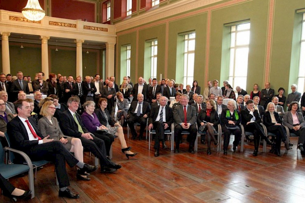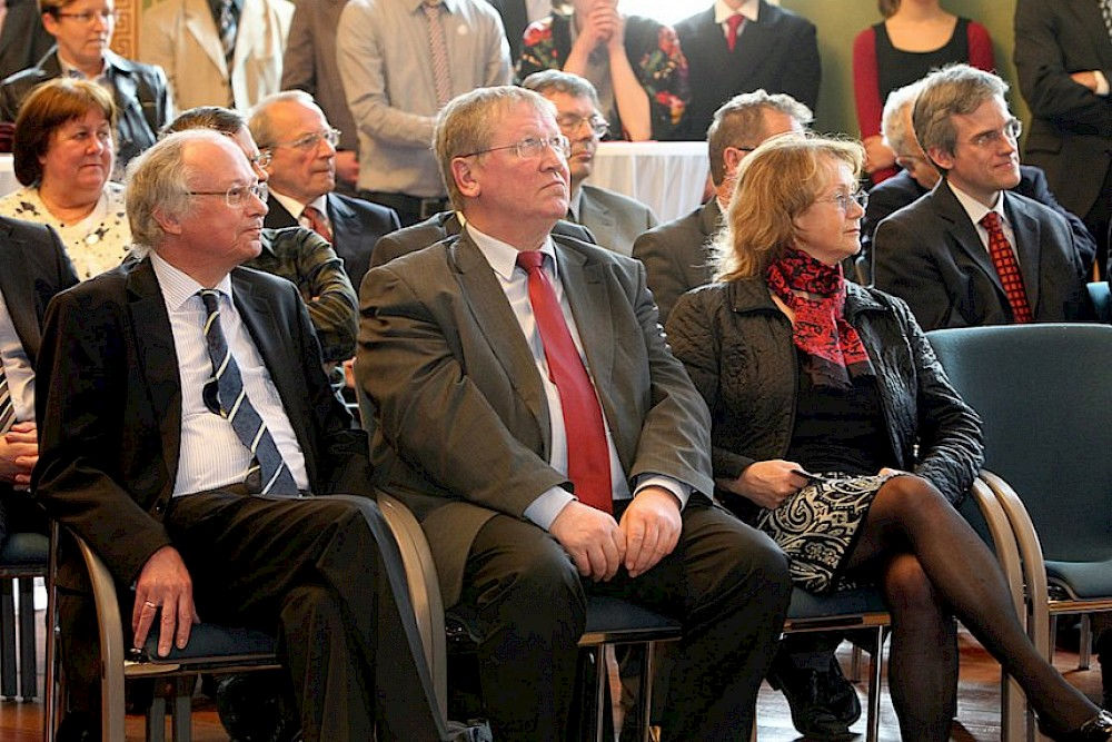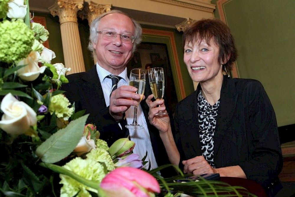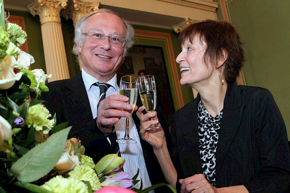 Schon vor längerem hatten sie sich darauf verständigt, diesen Termin nicht heimlich zu begehen, sondern sich den Tatsachen zu stellen und ihren Doppelgeburtstag zu feiern. Der Rahmen sollte aber nicht zu groß werden. Die Gästeschar ließ jedoch nicht auf sich warten und strömte zur Feierstunde in die Aula des Löwengebäudes.
