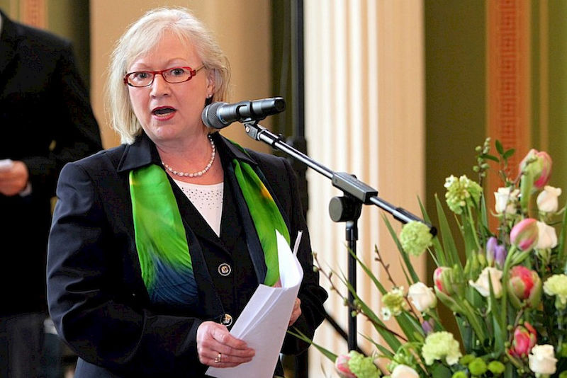 Die Geburtstags-„Kinder“ – wie sie die Oberbürgermeisterin sie kurz nannte – bedankten sich bei den Gästen. „Meine Mutter ist heute hier und hat mir an diesem Tag etwas sehr Wichtiges gesagt“, erklärte die Prorektorin. Das habe sie sehr aufgebaut, nämlich die Worte: „Kind, du bist doch noch soo jung.“ Daran knüpfte Rektor Sträter an und wies auf sein Recht hin, als Letzter zu sprechen: „Immerhin bin ich mit fünf Stunden der Ältere“. Er habe vor gehabt, den Worten seiner Vorrednerin nur ein „genau“ anzufügen. Das gelang dann aber doch nicht ganz, denn schließlich musste er noch auf das denkwürdige Ereignis vor genau 100 Jahren hinweisen: „Die Titanic startete am 10. April 1912 ihre Jungfernfahrt von Southamton nach New York.“ Dass das weitere Geschehen jedoch mit dem Doppelgeburtstag rein gar nichts zu tun habe, hob er schließlich hervor und sorgte damit erneut für heitere Stimmung im Saal.