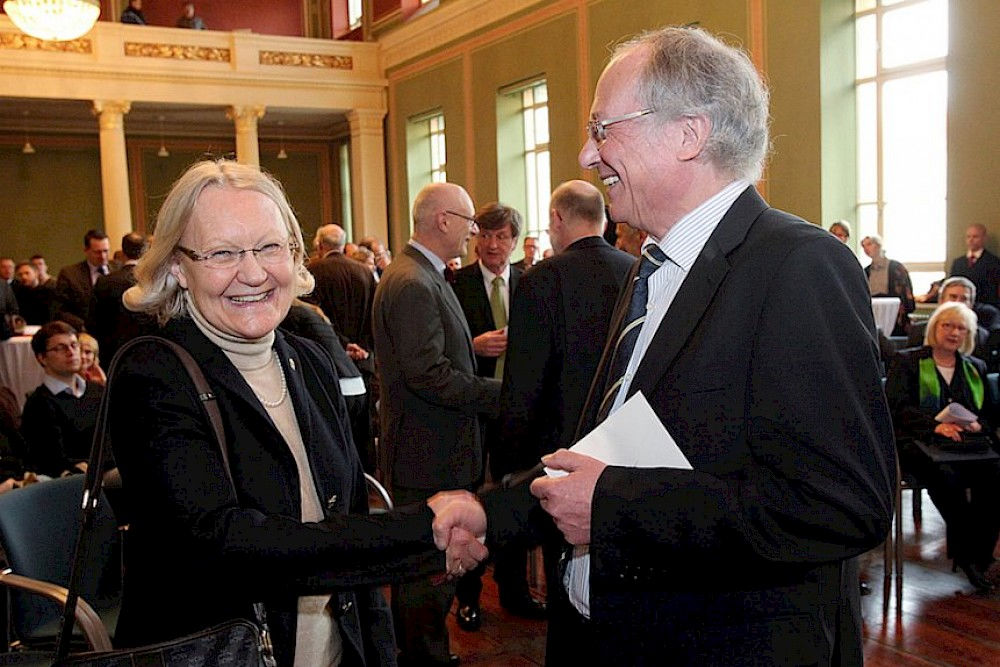 Zahlreiche Wegbegleiter waren gekommen, um zu gratulieren, darunter Altrektoren und zahlreiche Uni-Professoren. Auch Halles Oberbürgermeisterin Dagmar Szabados ließ es sich nehmen, dem Geburtstagsduo gute Wünsche zu überbringen. Ebenso stellten sich Staatssekretär Marco Tullner, die Leipziger Uni-Rektorin Beate Schücking, die Ex-Generalbundesanwältin beim Bundesgerichtshof Monika Harms, die Generalsekretärin der Leopoldina Jutta Schnitzer-Ungefug und Ex-Stadtwerke-Chef Wilfried Klose ein.