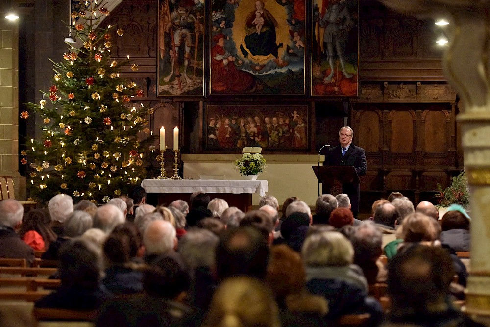 „Wenn wir objektiv reflektieren, wird jeder in Deutschland sagen können: Was für ein Glück! Wir haben noch nie so gut gelebt wie heute, wir haben Frieden und einen hohen Lebensstandard. Wenn wir die Nachrichten im Fernsehen schauen, wirkt es fast so, als lebten wir auf einer Insel der Glückseligen“, so Haseloff. Kirchengemeinden, so Haseloff, sind unerlässlich, sie inspirierten, könnten wichtige Anstöße geben. Den Kirchen sei es zu verdanken, dass verbindliche ethische und moralische Werte in Deutschland verankert seien.