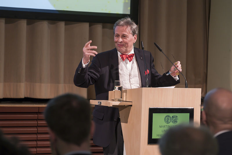 Gefeiert wurde an der Universität dennoch 2017 eher in Halle als in der Lutherstadt, denn es jährte sich auch die Vereinigung der Universitäten Halle und Wittenberg vor 200 Jahren. Und so betonte Sträter in seinem Jahresrückblick auch die Ereignisse des Festjahres: Neben der Ausstellung „Die combinierte Akademie“ waren vor allem der Festakt und das Universitätskonzert am 21. Juni Höhepunkte. „Als Fazit können wir feststellen, dass das Jubiläum ein guter Anlass war, unsere Universität zu präsentieren und auf uns aufmerksam zu machen“, sagte Sträter.