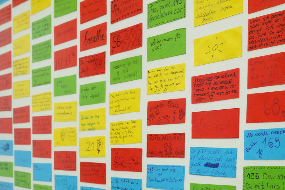 Die Botschaften reichen von anspornenden Zitaten wie „Books are the best weapon in the world“ über aufmunternde Zusprüche wie „Du schaffst das!” bis hin zu kleinen Zeichnungen und sorgten für eine Art kreative Kommunikation unter den Studierenden im Bibliotheksalltag. Die Aktion sei ein „völliger Selbstläufer“ gewesen, so Heise.