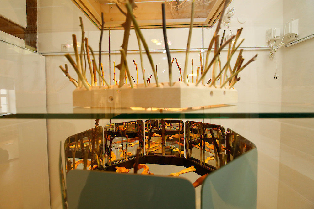 Ein erster Arbeitstand wurde zur Langen Nacht der Wissenschaften 2016 in den Räumen der Kunststiftung am Neuwerk gezeigt. Die finalen Ergebnisse - acht vollkommen unterschiedliche Kunstwerke – sind nun im dritten Stock des Stadtmuseums zu sehen. Line Jastram zum Beispiel hat drei bewegliche Bilderrahmen entwickelt. Diese sind mit unterschiedlichen Formen und auch mit Sand, der aus dem Gebiet der Halleschen Störung stammt, gefüllt. Die Betrachter können die Rahmen drehen und so selbst als Kraft wirken.