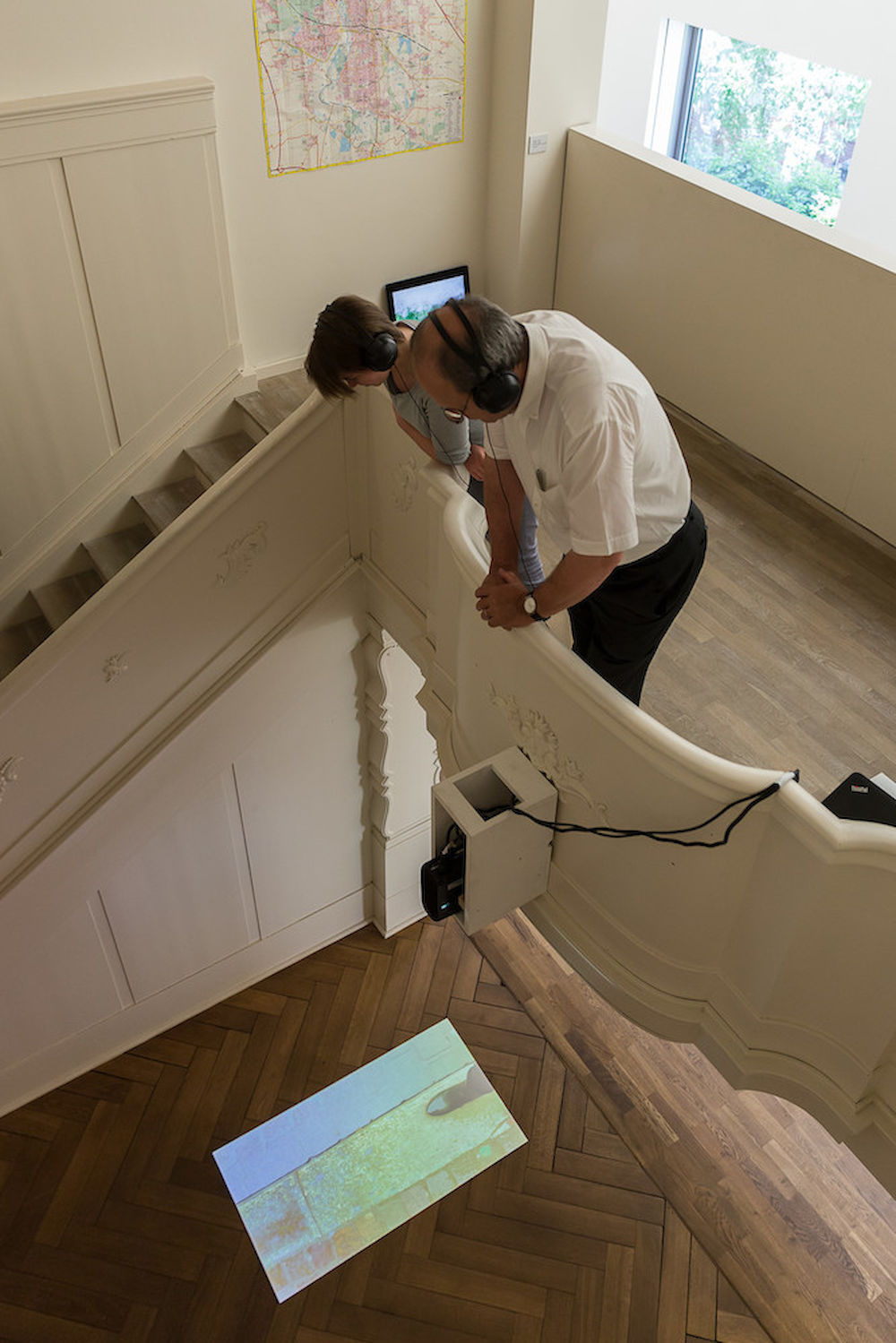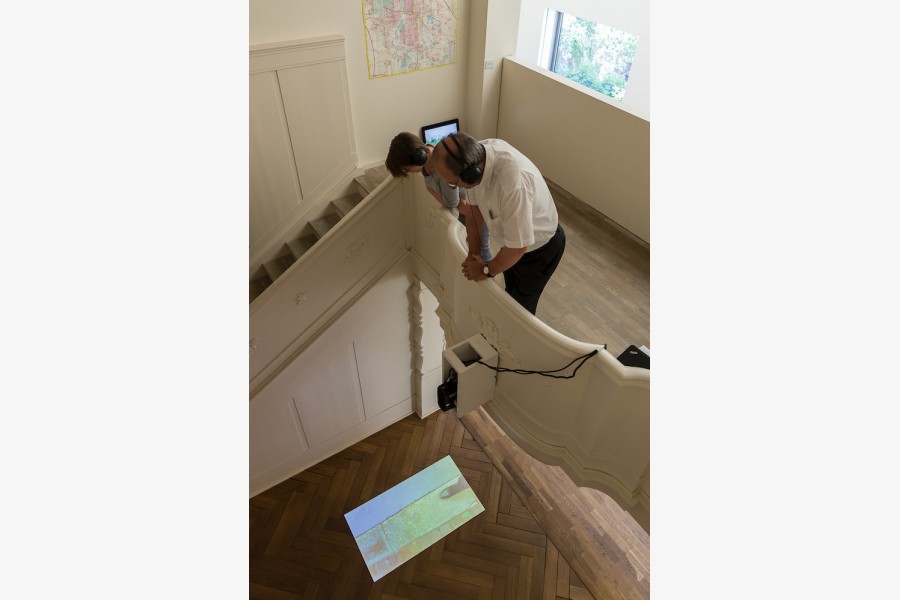 Mit einer Videokamera arbeitete Magdalena Rude. Sie nahm auf, wie sie den Weg der Halleschen Störung vom Hallmarkt bis zur Saline ablief. In einer Audioaufnahme erklärt sie gleichzeitig, wie die Gesteinsschichten aufgebaut sind, die bei einer Tiefbohrung erschlossen werden und schafft so eine Verbindung der vertikalen und der horizontalen Linie der Halleschen Störung.