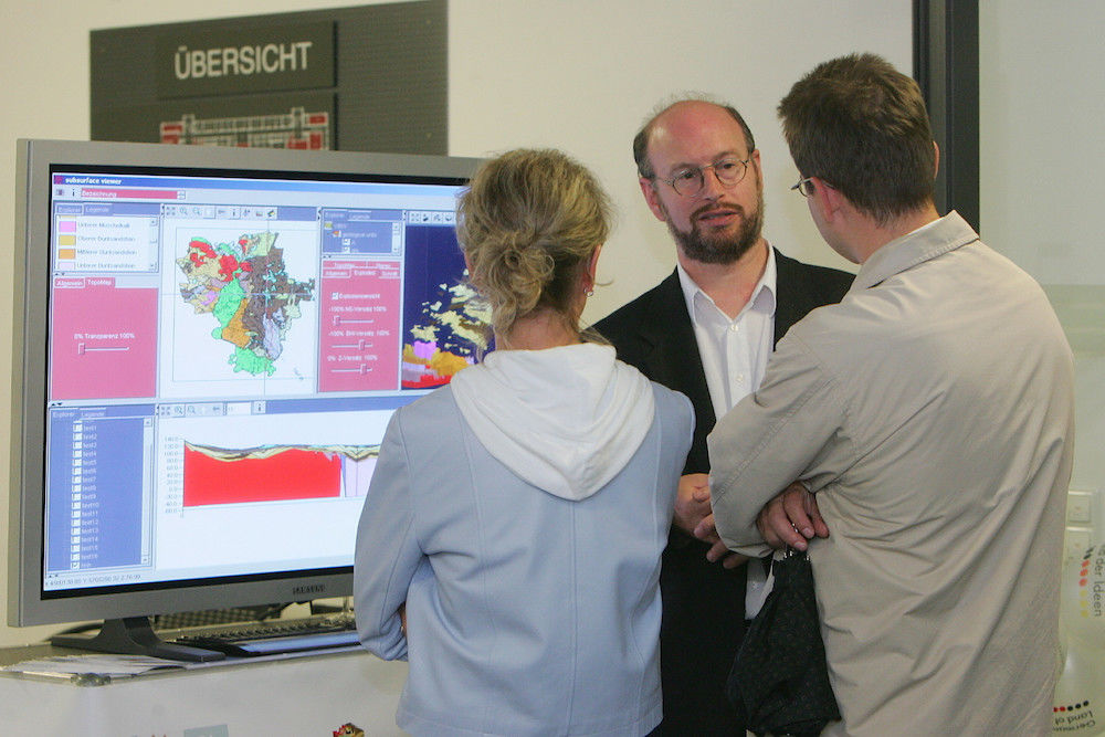 Die Themen der studentischen Arbeiten haben oft einen regionalen Bezug: Bei Franziska Höse können sich Besucher auf einer interaktiven Karte zeigen lassen, wie es um die Erdwärme an ihrem Wohnort bestellt ist; Jacob Haerter zeigt an zwei sachsen-anhaltischen Denkmälern, wie sich ein zu hoher Grundwasserspiegel auf die Fundamente auswirkt; Julia Reeg kann an jedem Fleck von Halle eine virtuelle Bohrung vornehmen, um die Bodenschichten zu ermitteln und Doktorand Abdelouahed Oussouss wird im Innenhof-Brunnen eine Bohrkamera versenken, die Live-Bilder aus dem Instituts-Untergrund liefern soll.