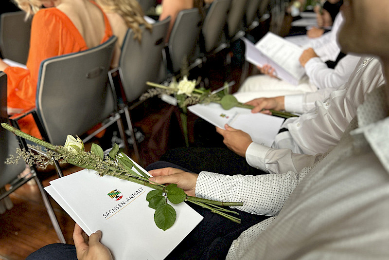 In der Aula im Löwengebäude haben heute 193 angehende Lehrerinnen und Lehrer in feierlichem Rahmen ihr erstes Staatsexamen erhalten. Damit entließ die MLU in diesem Studienjahr insgesamt 389 junge Menschen in den Vorbereitungsdienst, der in den Schulen stattfindet und mit dem zweiten Staatsexamen abschließt. 128 Abschlüsse betrafen das Lehramt an Grundschulen, 65 das an Sekundarschulen, 137 das an Gymnasien und 59 das an Förderschulen.