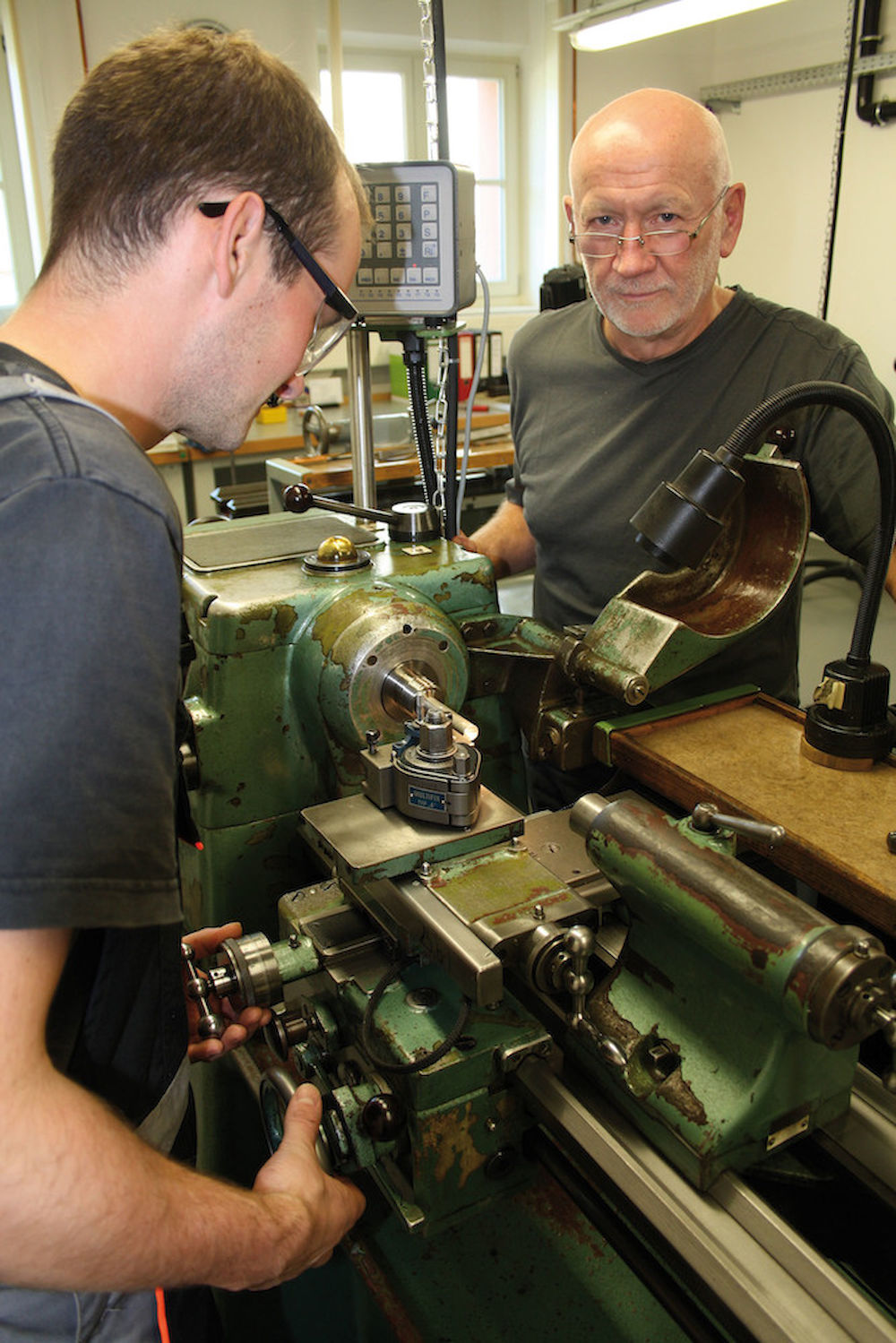 1967 hat Zschaege selbst als Lehrling an der MLU angefangen, damals im Hof des Uni-Gebäudes am Friedemann-Bach-Platz, wo der wissenschaftliche Gerätebau angesiedelt war. Feinmechaniker ist er geworden. In den Siebzigern folgte der Meisterlehrgang. Nach dessen Abschluss hat der Hallenser ununterbrochen ausgebildet, seit acht Jahren alleinverantwortlich. Zwei Azubis sind es zurzeit. Der Beruf heißt inzwischen Feinwerkmechaniker, die grundlegenden Tätigkeiten sind die gleichen geblieben: Feilen, Fräsen, Drehen. „Inzwischen sind natürlich auch Maschinen zu bedienen, die computergesteuert Werkstücke herstellen. Es handelt sich eben um einen sehr vielseitigen Handwerksberuf.“