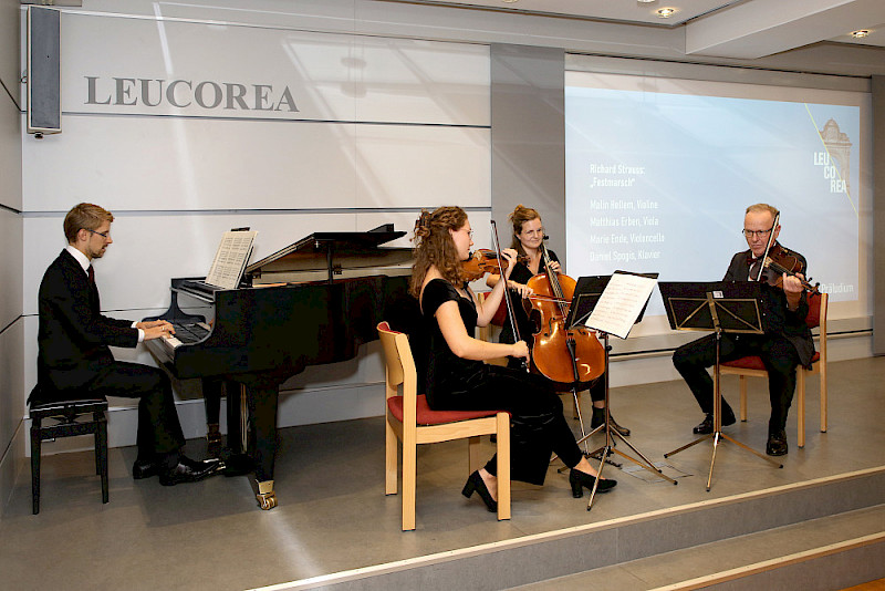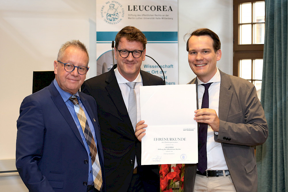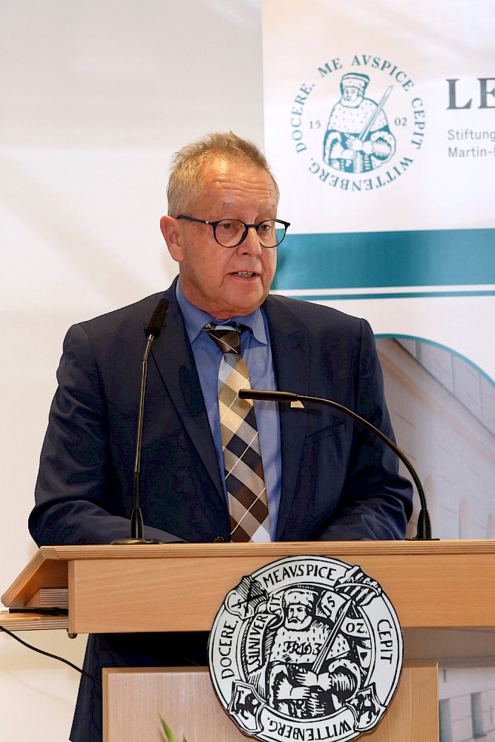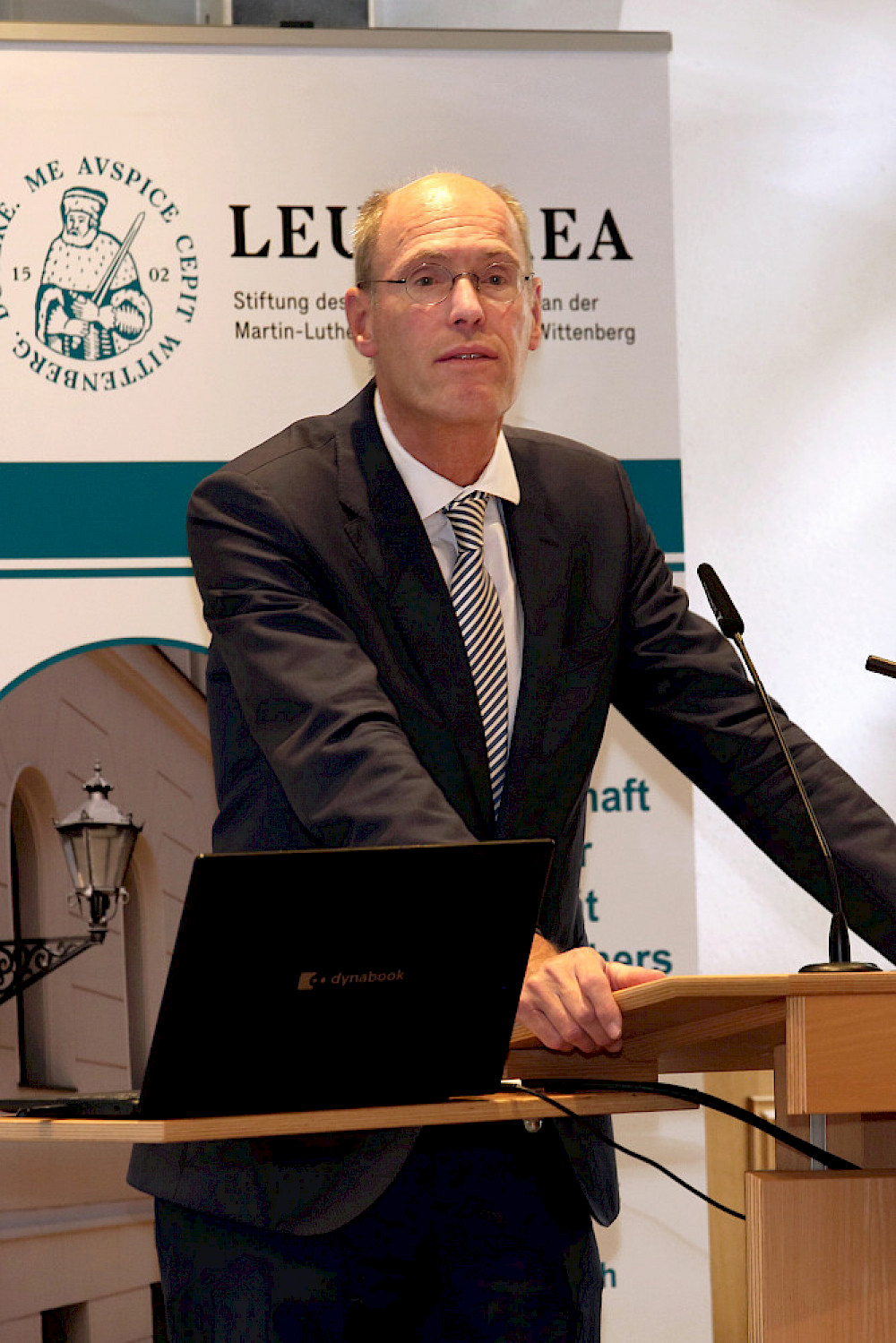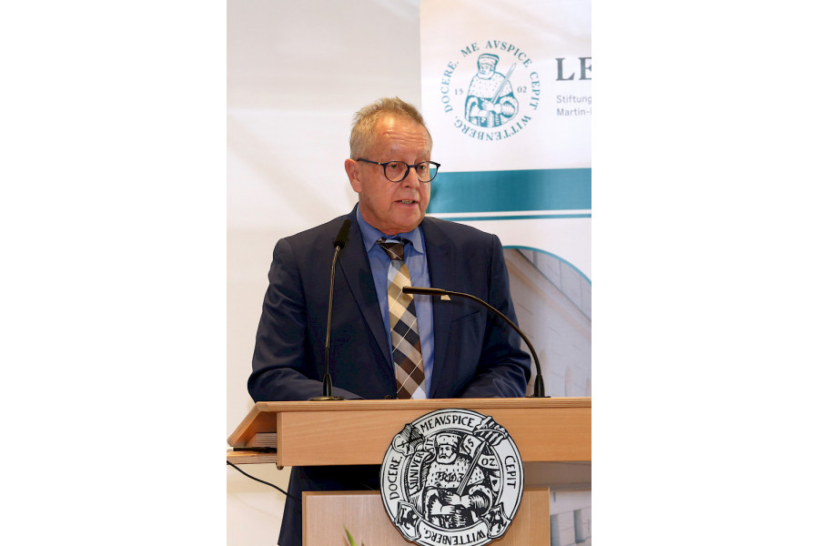 Ministerpräsident Reiner Haseloff hob in seinem Grußwort auf der Festveranstaltung die Bedeutung der Leucorea für den Wissenschaftsstandort Sachsen-Anhalt hervor. „Es ist ein bedeutendes Tagungs- und Forschungszentrum mit nationaler und internationaler Ausstrahlung entstanden, ein Ort der Wissenschaft und des Dialogs zwischen Menschen unterschiedlicher Nationalitäten, Religionen und Kulturen. Das ist für unser Land von großer Relevanz, und dafür bin ich sehr dankbar.“ Die Leucorea repräsentiere die Ursprünge der Martin-Luther-Universität in Wittenberg, das sollte künftig noch stärker sichtbar werden, so Haseloff.