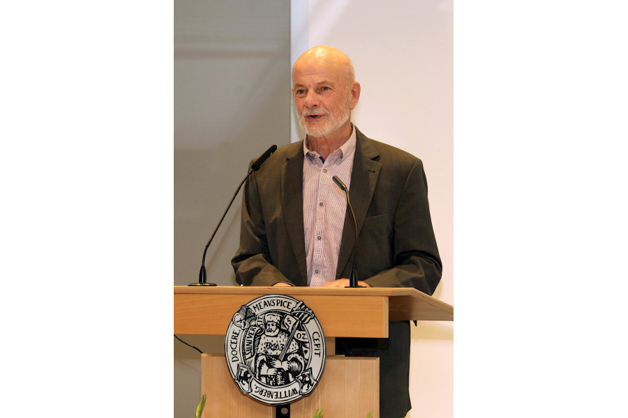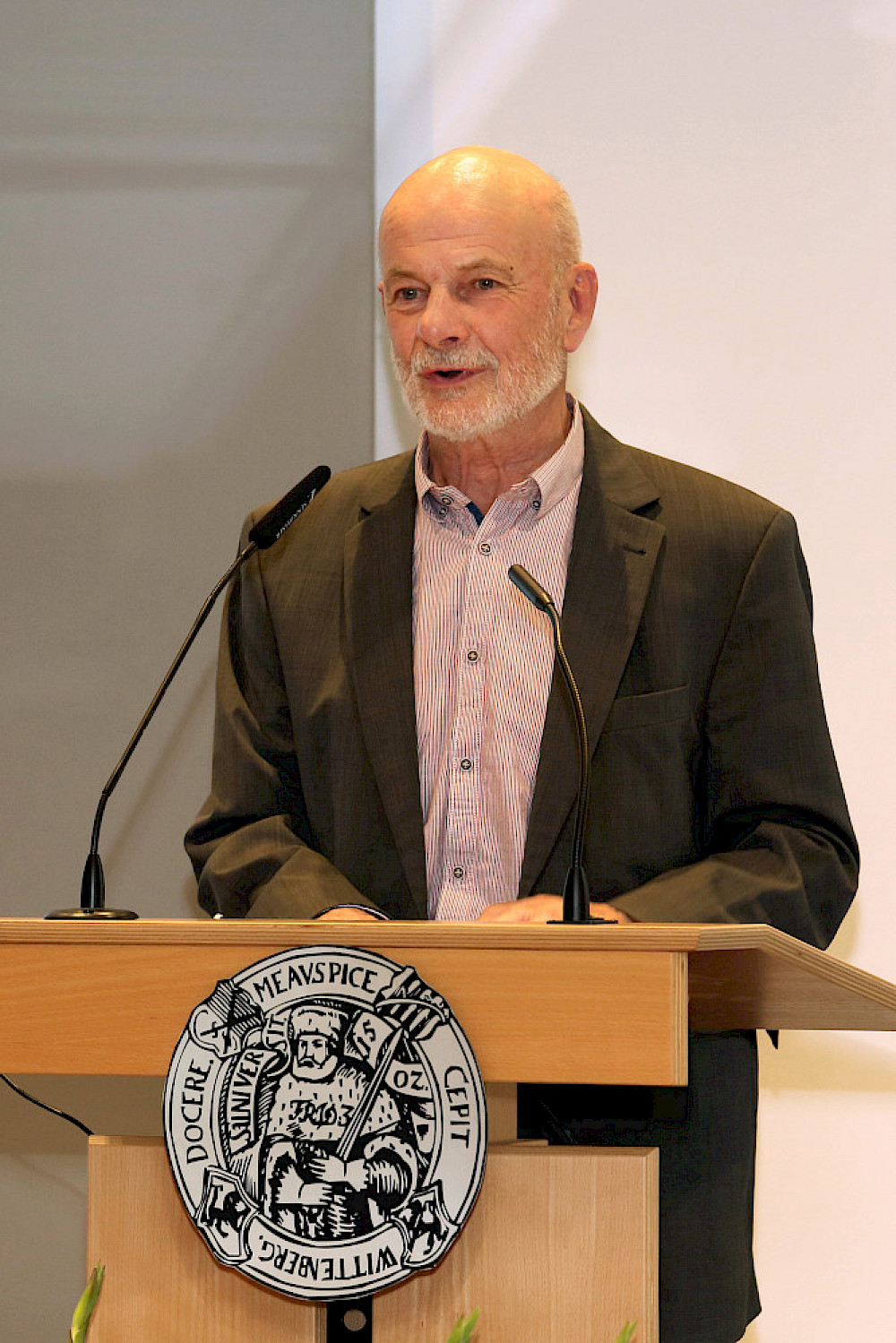 Zu Beginn der Jubiläumsfeier gedachten die Gäste mit einer Schweigeminute des vor wenigen Tagen verstorbenen Theologen und Bürgerrechtlers Friedrich Schorlemmer. Schorlemmer, ein Alumnus der MLU, war in den 1990er Jahren auch einer der Impulsgeber für die Disputation, das traditionelle Streitgespräch der MLU am Reformationstag in Wittenberg.