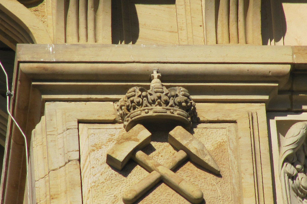 Von 1884 bis 1946 war das Amt dann in der August-Bebel-Straße 13 angesiedelt, dem heutigen Standort des Verwaltungsgebäudes der Universitäts- und Landesbibliothek. „Ein Blick auf die Fassade des Gebäudes ist sehr aufschlussreich“, sagt der Rechtshistoriker Lück. „Dort sind bis heute Schlägel und Eisen als die unverwechselbaren Symbole des Bergbaus zu entdecken.“