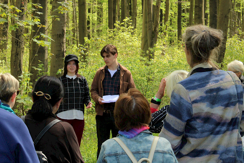 An den verschiedenen Stationen können Interessierte Lyrik und Märchen von bekannten wie unbekannten Autorinnen und Autoren hören, die sich aus verschiedenen Blickwinkeln mit dem Thema Wald befassen. Friedrich Hölderlin, Annette von Droste-Hülshoff oder Jakob und Wilhelm Grimm sind ebenso vertreten wie Sophie Tieck, Emanuel Geibel oder Helmina von Chézy. Zu hören sind auch Stücke von Dichtern und Schriftstellern, die einen ganz besonderen Bezug zu Heiligenstadt hatten: Theodor Storm, der fast ein Jahrzehnt in der Stadt lebte, und Heinrich Heine, der sie besuchte, um sich dort taufen zu lassen.