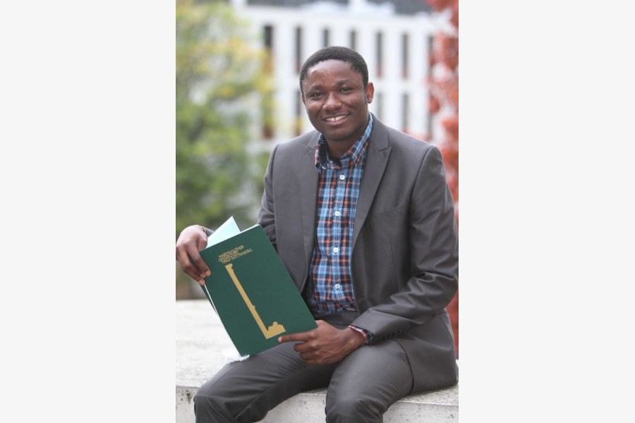 Das hat Clement Appiah aus Ghana bereits getan. Unter tosendem Applaus nahm er seinen DAAD-Preis mit einem strahlenden Lächeln entgegen – ein schönes Bild für das Ende des diesjährigen Festaktes in der Orientierungswoche.