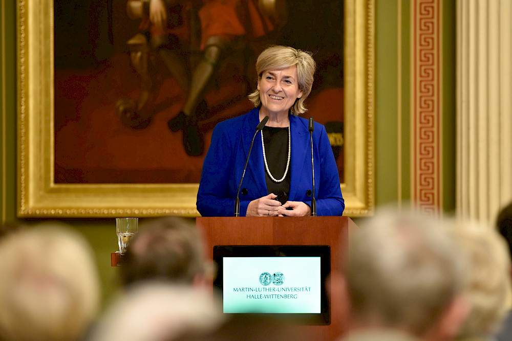 Zum 51. Halleschen Wirtschaftsgespräch ist am Dienstag Prof. Dr. Karola Wille, Intendantin des Mitteldeutschen Rundfunks (MDR), zu Gast gewesen. In der Aula des Löwengebäudes referierte sie zum Thema „Ein gemeinwohlorientiertes Kommunikationsnetzwerk – zur Debatte über einen zeitgemäßen Auftrag für den öffentlich-rechtlichen Rundfunk“. Die seit 1994 existierenden Halleschen Wirtschaftsgespräche bieten eine Plattform zum Austausch von Informationen zu aktuellen Themen und Ideen zur wirtschaftlichen Entwicklung. Im Vordergrund steht der direkte Kontakt zwischen den Referenten und dem interessierten Publikum aus Industrie, Verwaltung, Wissenschaft, Politik und Kultur. Veranstalter ist das Institut für Unternehmensforschung und Unternehmensführung an der MLU (ifu) gemeinsam mit der Juristischen und Wirtschaftswissenschaftlichen Fakultät.