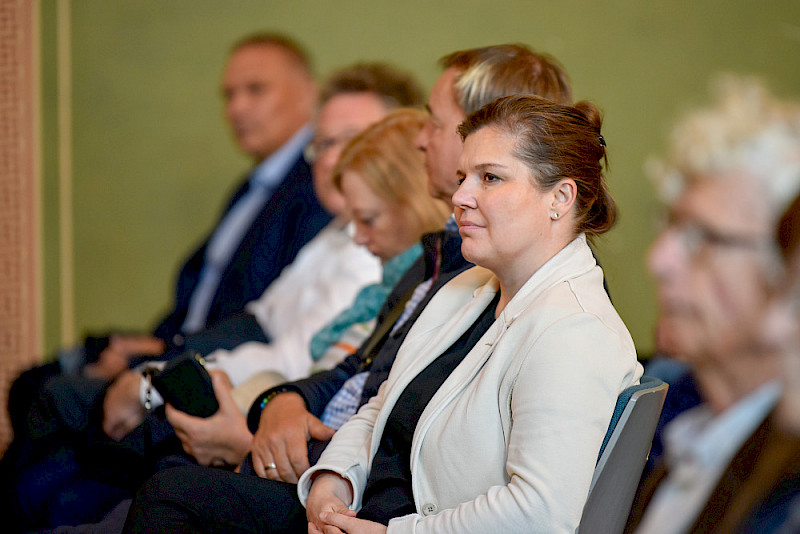 Beim 53. Halleschen Wirtschaftsgespräch ist am Dienstag die Wirtschaftsweise Prof. Dr. Monika Schnitzer zu Gast an der MLU gewesen. Die Vorsitzende des Sachverständigenrates zur Begutachtung der gesamtwirtschaftlichen Entwicklung sprach in der Aula des Löwengebäudes zum Thema „Wirtschaftspolitik in Zeiten geopolitischer Spannungen“. Ihrem Vortrag schloss sich eine rege Debatte an, die von Prof. Dr. Oliver Holtemöller, Professor für Makroökonomik an der MLU und stellvertretender Präsident des Leibniz-Instituts für Wirtschaftsforschung Halle (IWH), moderiert wurde. Eröffnet wurde die Veranstaltung von Rektorin Prof. Dr. Claudia Becker und Prof. Dr. Ralf Michael Ebeling, Vorstandsvorsitzender des Instituts für Unternehmensforschung und Unternehmensführung an der MLU (ifu).