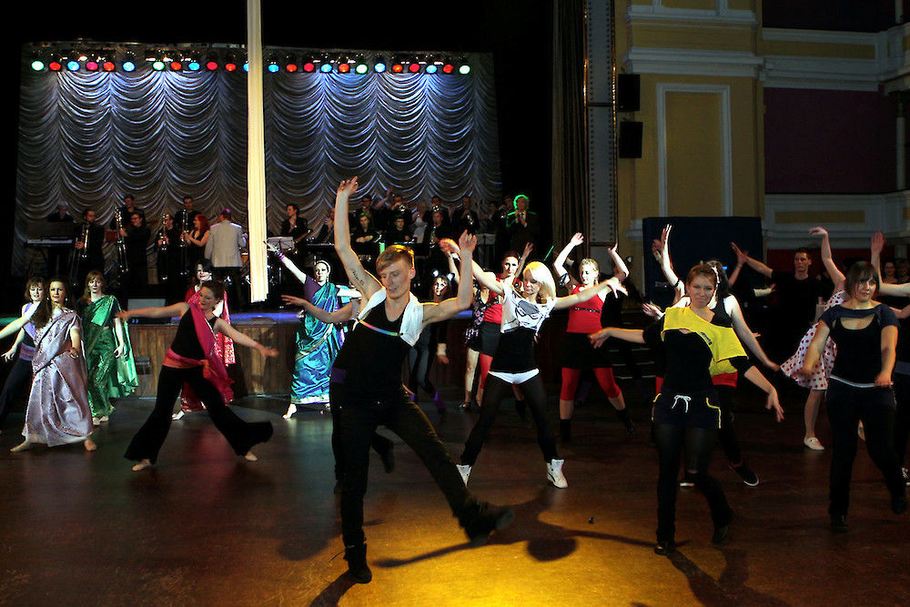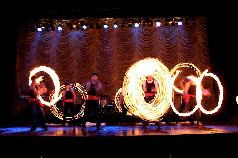 Aber nicht nur Hüften und Beine zeigten sich dynamisch – zwischen Formations- und Orientalischem Tanz, Break-, Musical-, Jazz-, Irish und Female Club Dance, Rock'n Roll, Tango, Hip Hop und Salsa schwebten auch in Bändern verwebte Luftartisten von der Decke herab, bevor die Jongleure ein pyromanisches Spektakel aufführten.