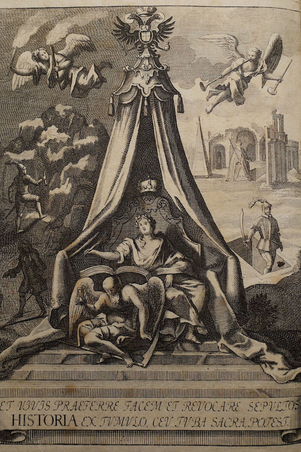 Da fiel ihm ein Band mit ungewöhnlichem Bild auf der Seite gegenüber des Titelblattes auf: Ein sogenanntes Frontispiz blickte ihm entgegen. Diese Innengestaltung sollte das Interesse des Lesers wecken. Das Ziel war erreicht: Daniel Fulda beschäftigte sich mit dem Buch. Und es entpuppte sich als Rarität. Nicht nur, weil Frontispize für reichshistorische Werke eher untypisch sind. „Mich machte vor allem die Darstellung neugierig.“