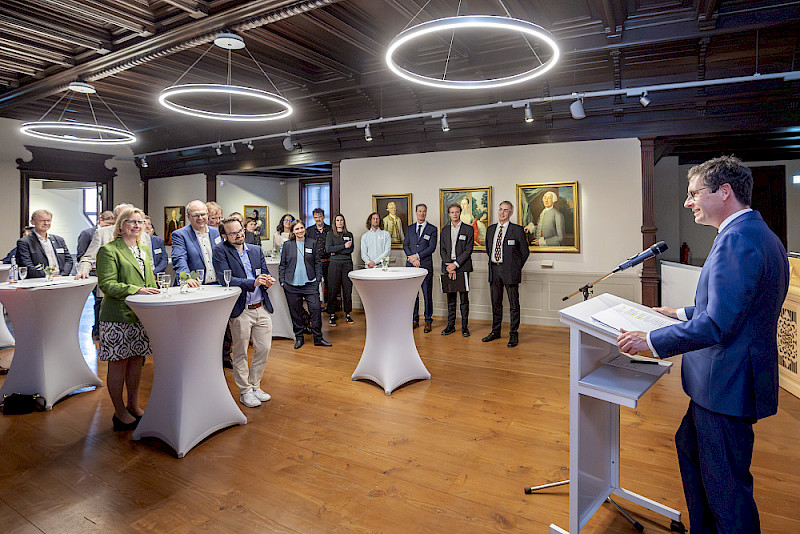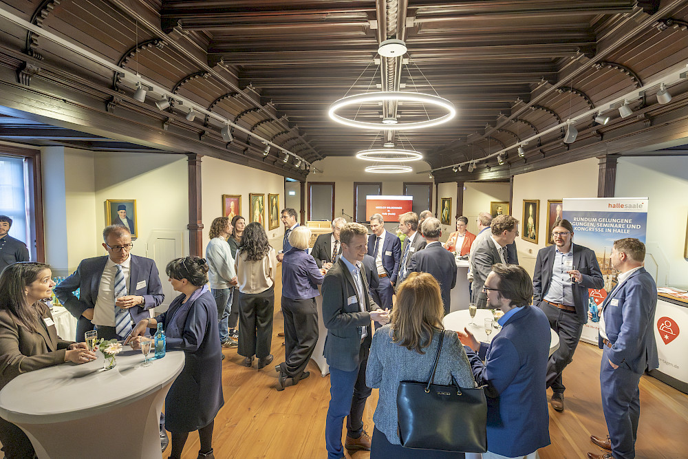 Im Christian-Wolff-Saal des Stadtmuseums begrüßte Halles Oberbürgermeister Dr. Alexander Vogt am Abend die Neuberufenen der drei Hochschulen Halles, neben der MLU die Burg Giebichenstein Kunsthochschule und die Evangelische Hochschule für Kirchenmusik.