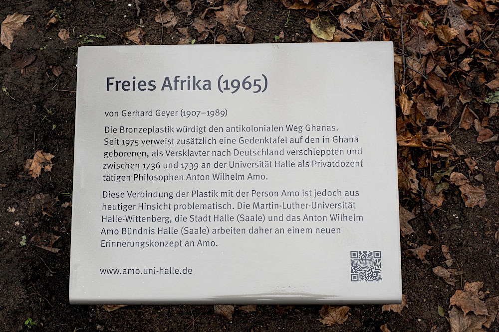 Die Bronzeplastik würdigt den antikolonialen Weg Ghanas. Seit 1975 verweist zusätzlich eine Gedenktafel auf den in Ghana geborenen, als Versklavter nach Deutschland verschleppten und zwischen 1736 und 1739 an der Universität Halle als Privatdozent tätigen Philosophen Anton Wilhelm Amo.
