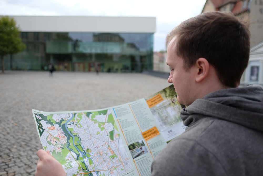 „Der Plan hilft auch, wo Google Maps nicht mehr weiter weiß“, sagt Evers – zum Beispiel, wenn es um den Von-Seckendorff-Platz geht, der in punkto Uni-Liegenschaften beim Suchmaschinen-Giganten Lücken aufweist. Neu in diesem Jahr sind neben Detailkarten für die einzelnen Campus-Standorte, die für eine bessere Lesbarkeit sorgen, auch mehrere Fotos. Die grafische Gestaltung und die Redaktion übernahm Katharina Nitschke, Mitarbeiterin der Allgemeinen Studienberatung und des Hochschulmarketings. Erhältlich ist der Plan kostenlos – in haushaltsüblichen Mengen – an folgenden Stellen: Zentrale Information, Allgemeine Studienberatung, Studierenden-Service-Center im Löwengebäude, beim Stadtmarketing und beim Studentenwerk. Geplant ist zudem, ihn über den Uni-Shop anzubieten. Der Plan wird bei Bedarf aktualisiert und nachgedruckt.