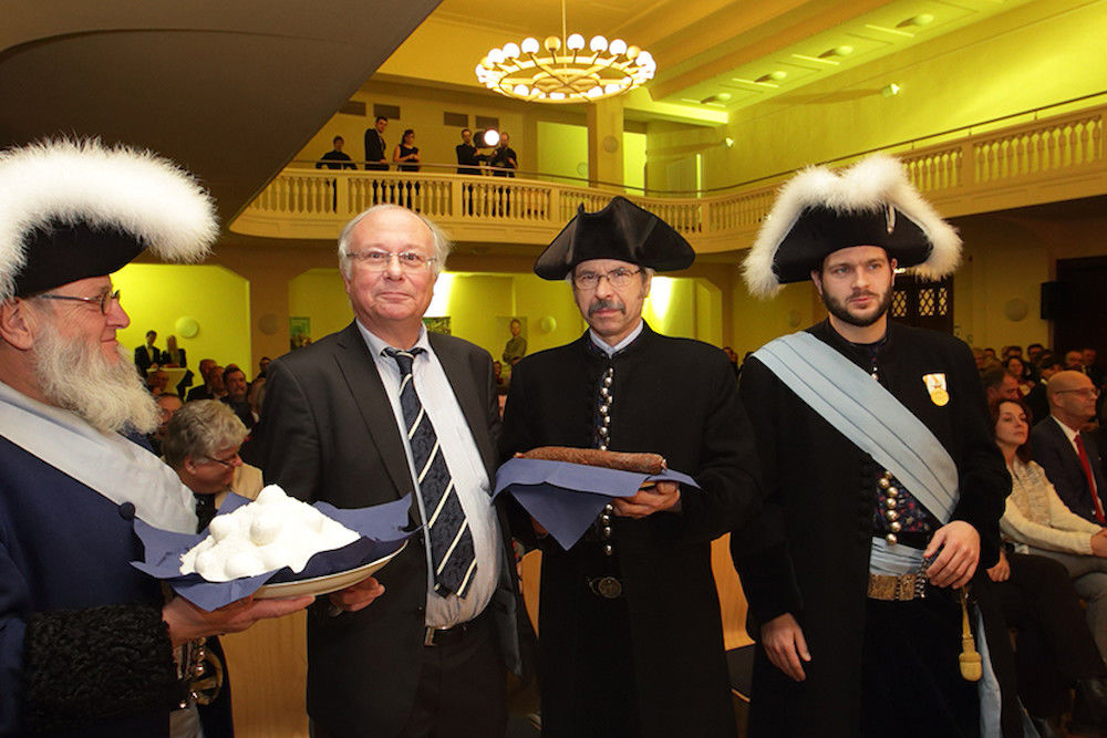 In der Debatte um Flüchtlinge und neue Formen des Populismus sei die Wissenschaft gefragt, so der Rektor: „Zu einer Diskussionskultur gehört der saubere Umgang mit Sprache, mit Begriffen und deren Geschichte“, so der Kirchenhistoriker, der in diesem Zusammenhang auf die Bedeutung der Universität Halle verwies: „In Deutschland hat die Wissenschaft des christlichen Orients nur noch eine Professur – und zwar in Halle, an einer Universität, an der zu Christentum, Judentum und Islam geforscht wird. Wünschen Sie uns deshalb Erfolg für die kommenden Jahre – es wird unser gemeinsamer Erfolg sein“, schloss Sträter, bevor er die traditionellen Neujahrsgeschenke der Halloren-Salzwirkerbrüderschaft entgegen nahm. „Viele wache Geister und sprudelnde Forschungsgelder“ wünschten die Halloren dem Rektor beim Überreichen von Schlackwurst und Soleiern.