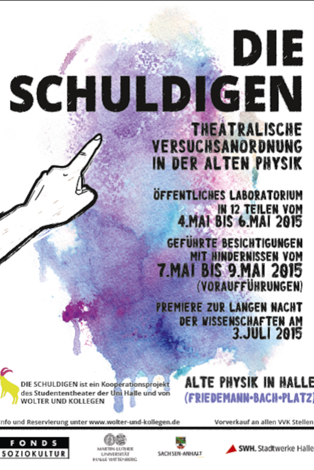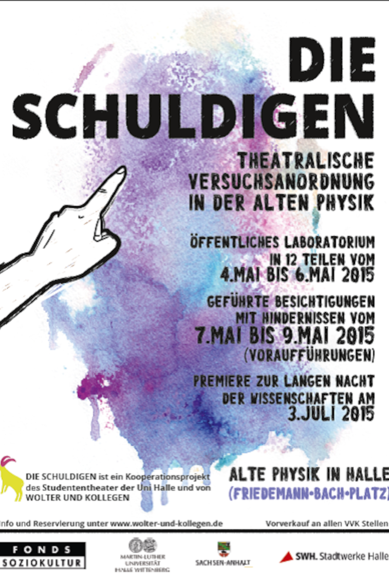 Hin und wieder unterbricht Tanzpädagogin Ellen Brix die Probe und bespricht die Feinheiten der Büßer-Choreografie mit der Gruppe. Die Choreografie ist Teil der neuen Aufführung „Die Schuldigen“ des Studententheaters Halle, die zur Langen Nacht der Wissenschaften am 3. Juli ihre Premiere feiert. Bereits ab heute Abend kann jeder den Darstellern beim Proben zuschauen: Bis Mittwoch dieser Woche lädt das Studententheater jeweils ab 18 Uhr zum „öffentlichen Laboratorium“ in den Räumen des alten Instituts für Physik am Friedemann-Bach-Platz 6 ein.