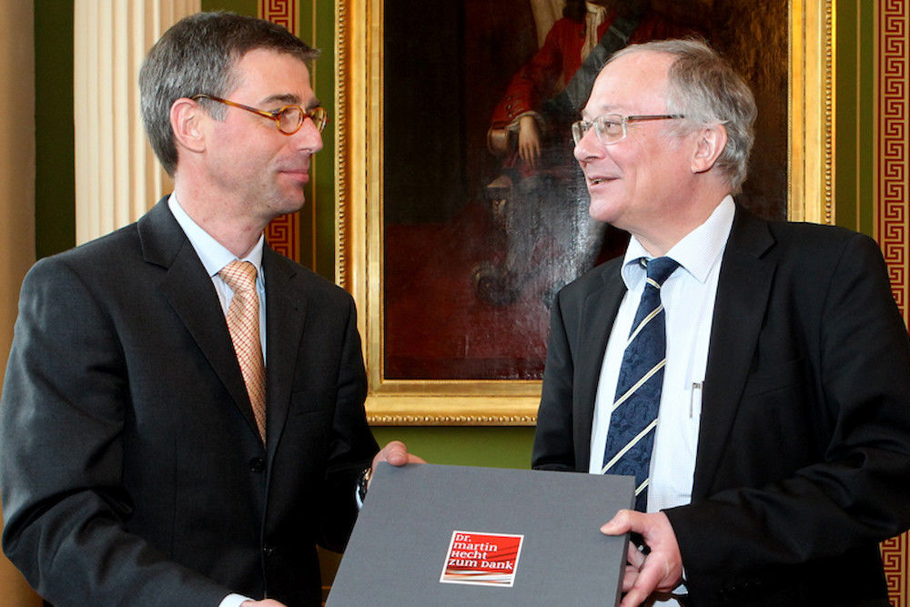Dr. Martin Hecht: Beschäftigt haben mich in dieser Zeit drei Dinge: Zum einen die Fragen der Hochschulsteuerung und der Organisation der Universität. Diese Themen haben insbesondere die Jahre 2004 bis 2007 geprägt, als sich die großen Veränderungen im bundesdeutschen Wissenschaftssystem auf die Hochschulen auswirkten. Dazu zähle ich die ersten Zielvereinbarungen mit dem Land, die Änderung des Hochschulgesetzes, auch die Frage der Veränderung der Universitätsstruktur, die Bologna-Reform und vieles mehr. Ganz unterschiedliche Facetten haben in dieser Zeit die Arbeitsweise der Universität verändert. Das war sehr prägend.