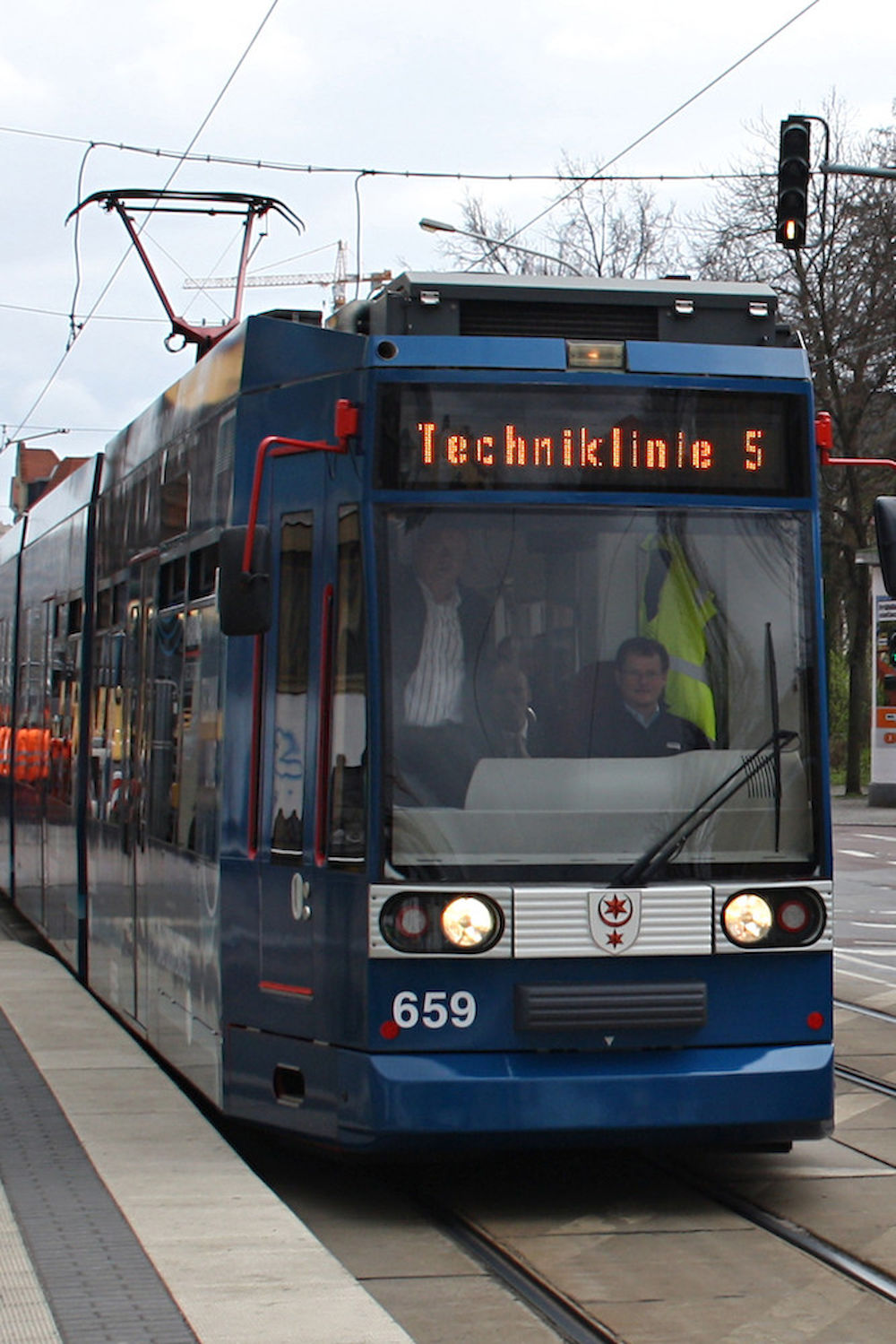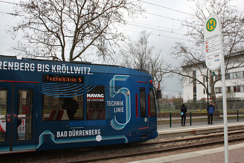 Seit jeher verbindet die Straßenbahnlinie 5 Standorte von Wissenschaft und Technik. An wie vielen Haltestellen geforscht, entwickelt und produziert wird, war an diesem Tag für alle Mitfahrenden leicht nachzuvollziehen. In Leuna, Merseburg, Schkopau, Ammendorf und an zehn verschiedenen Zwischenstopps in Halle stiegen Vertreter von insgesamt 24 Einrichtungen und Unternehmen aus Wissenschaft und Wirtschaft zu und berichteten von Tradition und Innovation an ihrem Standort.