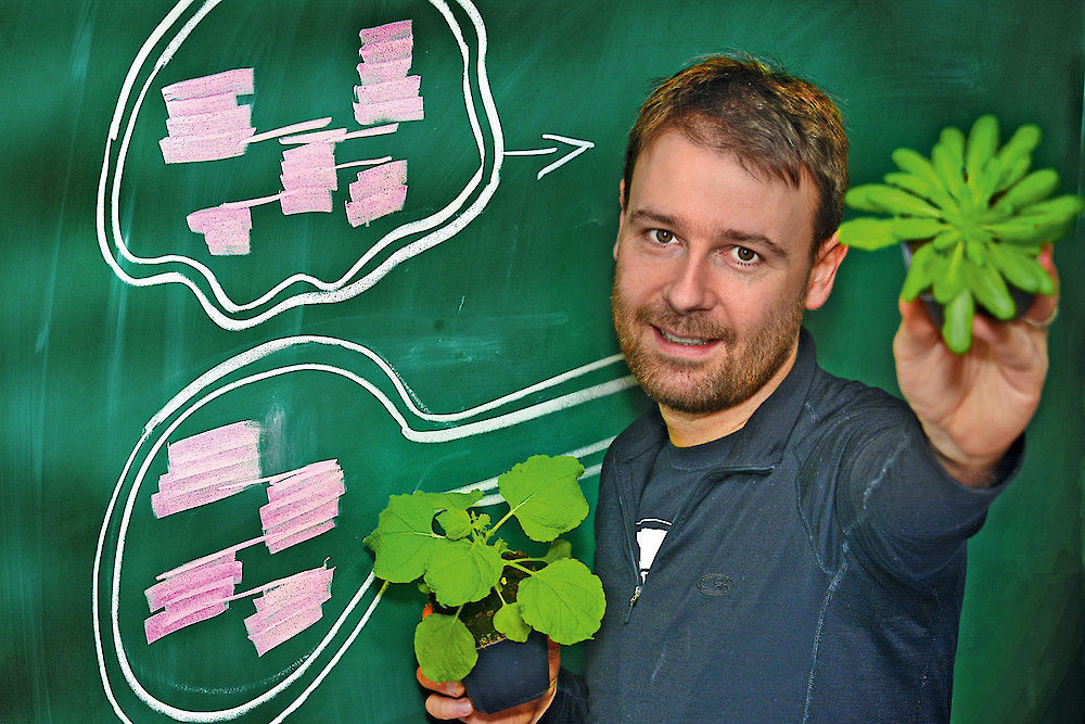 Seine Nachwuchsgruppe beschäftigt sich mit einem recht jungen Forschungsfeld: Um Pflanzenzellen zu verstehen, schaut sie ihnen mit Hilfe von fluoreszierenden Proteinen und Mikroskopen beim Leben zu. Dabei beobachten die jungen Wissenschaftler Formveränderungen der Zellbestandteile und wollen herausfinden, wie sich die Veränderungen auf deren Funktion auswirken. „Solche Veränderungen wurden schon im 19. Jahrhundert in lebenden Zellen beschrieben. Aber als Elektronenmikroskope aufkamen, hat man dann schlichtweg vergessen lebende Zellen zu beobachten.“ Die grundlegende Beobachtung für seine heutige Arbeit machte der Biologe bereits 2010 während seiner Dissertation am Institut für Pflanzenphysiologie in Halle. „Ich habe Plastiden untersucht. Das sind rundliche bis ovale Zellbestandteile, die die Pflanze unter anderem für die Photosynthese benötigt. Was die wenigsten wissen: die Plastiden können lange schlauchartige Ausstülpungen bilden. Aber warum sie das tun und was die Ausstülpungen für eine Funktion haben, dass weiß man nicht so genau.“ Genau das will Schattat jetzt herausfinden. „Den Rahmen der Dissertation hätte das gesprengt.“