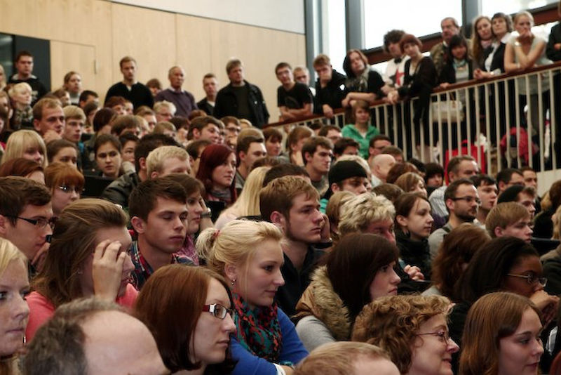 Voll, voller, Audimax: Bei der Immatrikulationsfeier am 7. Oktober wurden selbst die Stehplätze im Hörsaal knapp. Über 4000 neue Studierende konnte Rektor Udo Sträter zum Auftakt des Wintersemesters an der MLU begrüßen. Wer keinen Platz im Hörsaal fand, könnte die Videoliveübertragung verfolgen. "Für die größten Vorlesungen haben wir wieder das Steintor-Varieté angemietet. Und im Sommersemester haben wir ein wunderbares neues Fußballstadion, wo alle reinpassen", scherzte seine Magnifizienz. Mit dem Festakt endete die erste zentralen Einführungswoche an der halleschen Universität.