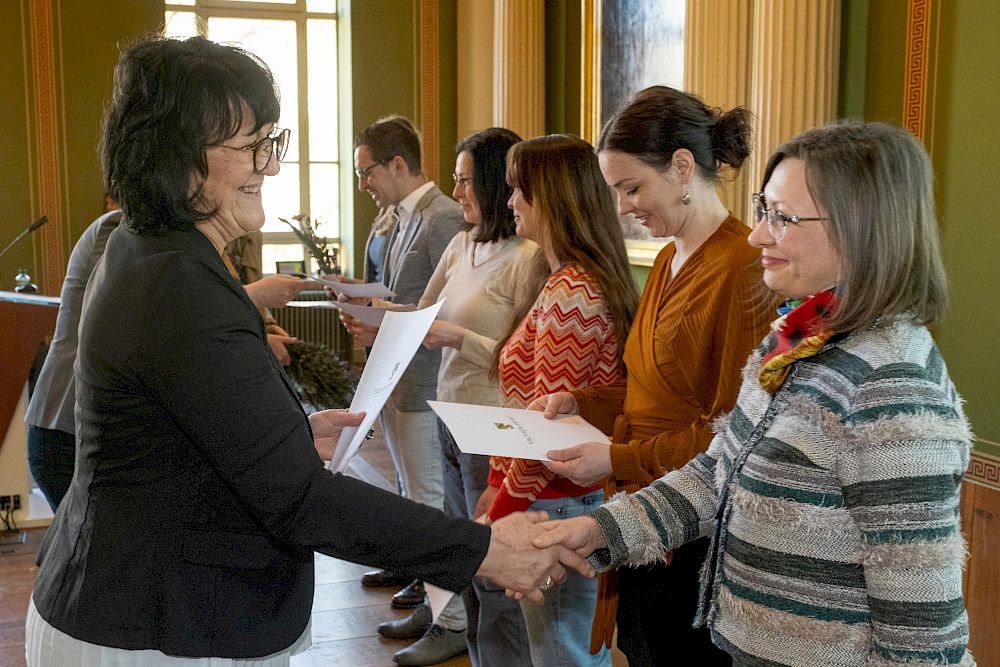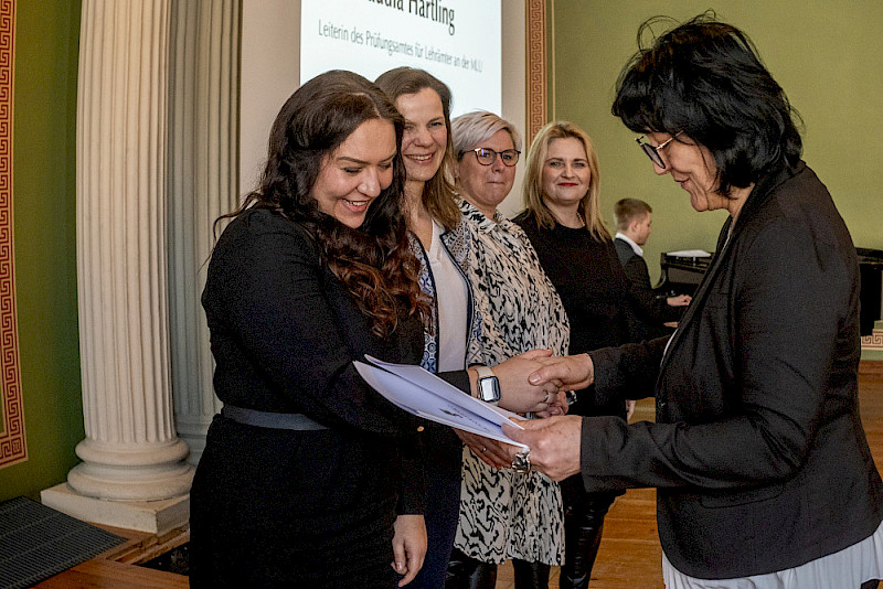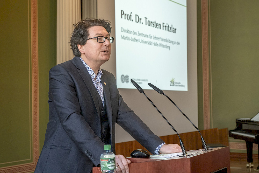 Der Direktor des Zentrums für Lehrer*innenbildung (ZLB) an der Universität Prof. Dr. Torsten Fritzlar sagte gleich zu Beginn der festlichen Veranstaltung in der Aula des Löwengebäudes: „Das ist ein wichtiger Tag für das Land, für die Schulen und die Schülerinnen und Schüler.“ Denn 55 Lehrerinnen und Lehrer von Grundschulen, Sekundarschulen und Gymnasien haben das Ziel, erreicht, in ihren gewählten Fächern, nun ganz offiziell mit Zertifikat unterrichten zu können.