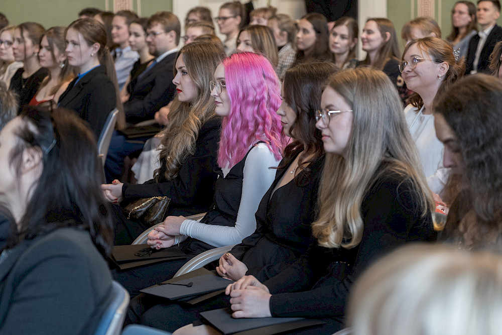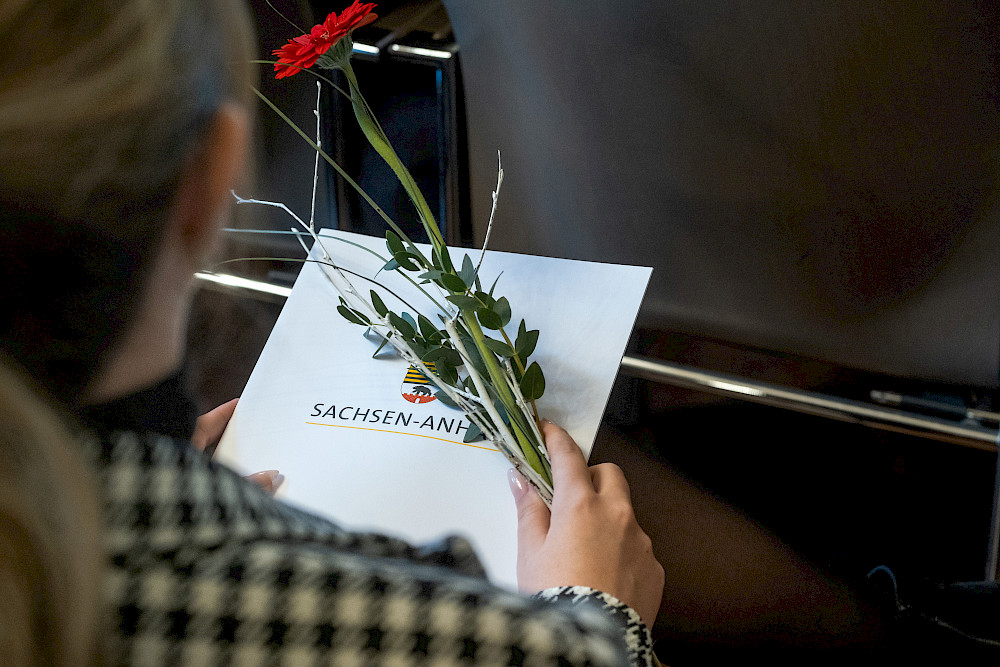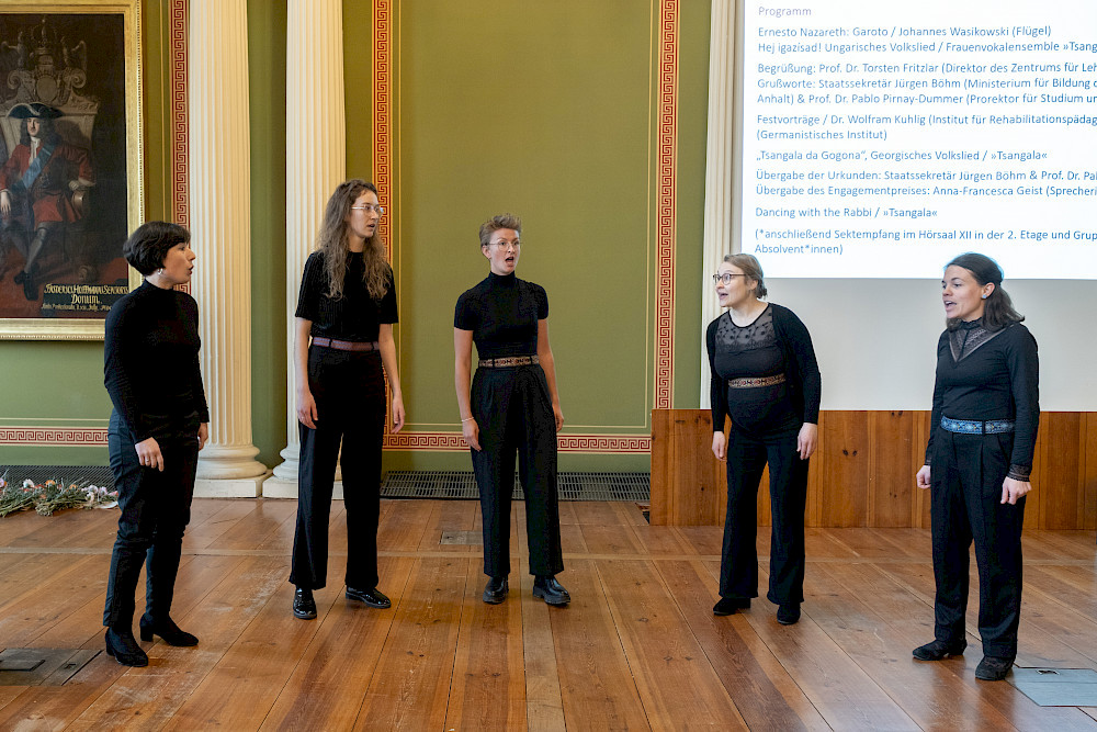 Insgesamt absolvierten 217 angehende Lehrerinnen und Lehrer ihre erste Staatsprüfung, die vom Landesprüfungsamt für Lehrämter durchgeführt wird: für das Lehramt an Förderschulen 32, für das an Sekundarschulen 37, für Grundschulen 82 und für Gymnasien 66. Die feierliche Zeugnisübergabe in der Aula wurde von Johannes Wasikowski am Flügel und dem Frauenvokalensemble „Tsangala“ umrahmt.